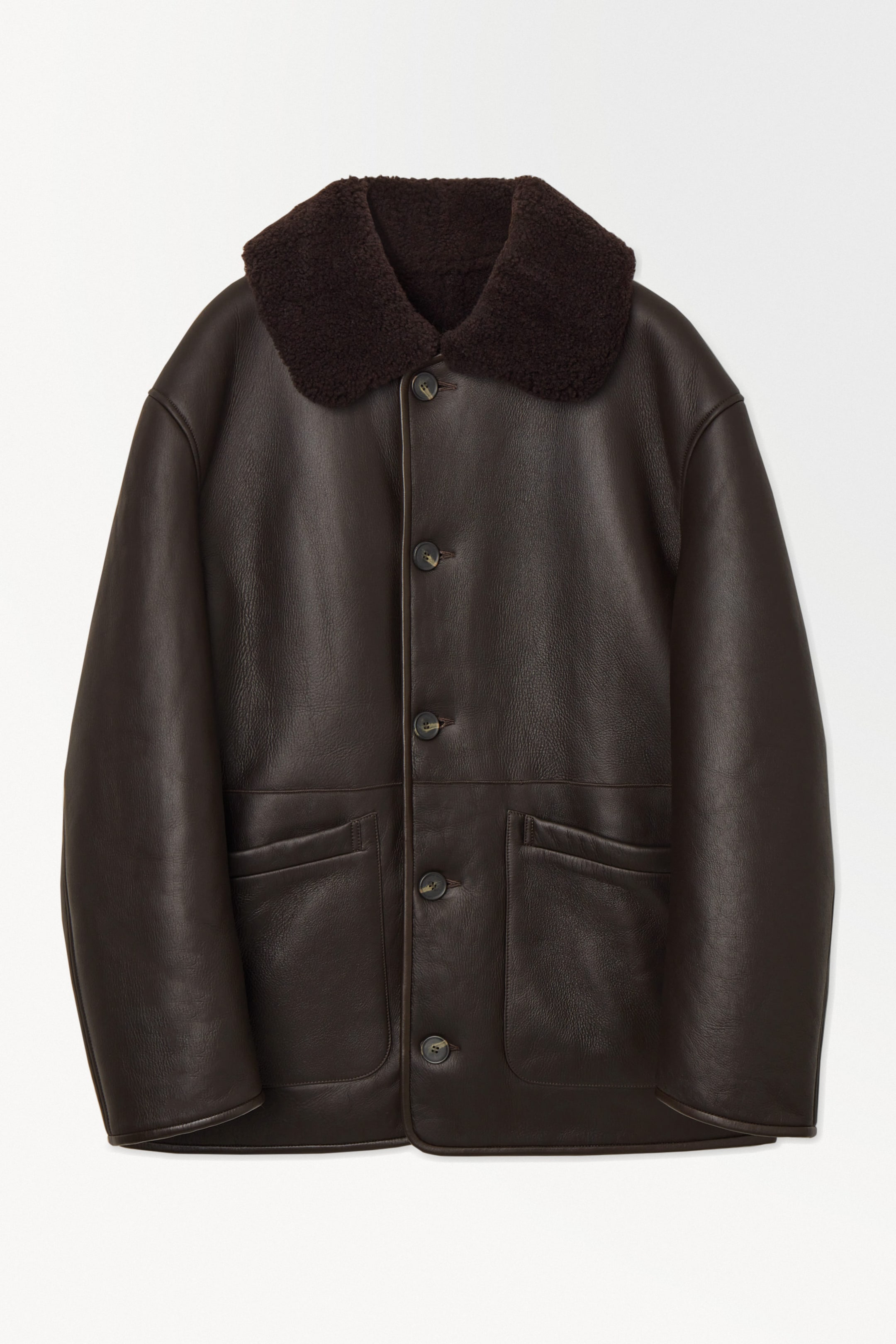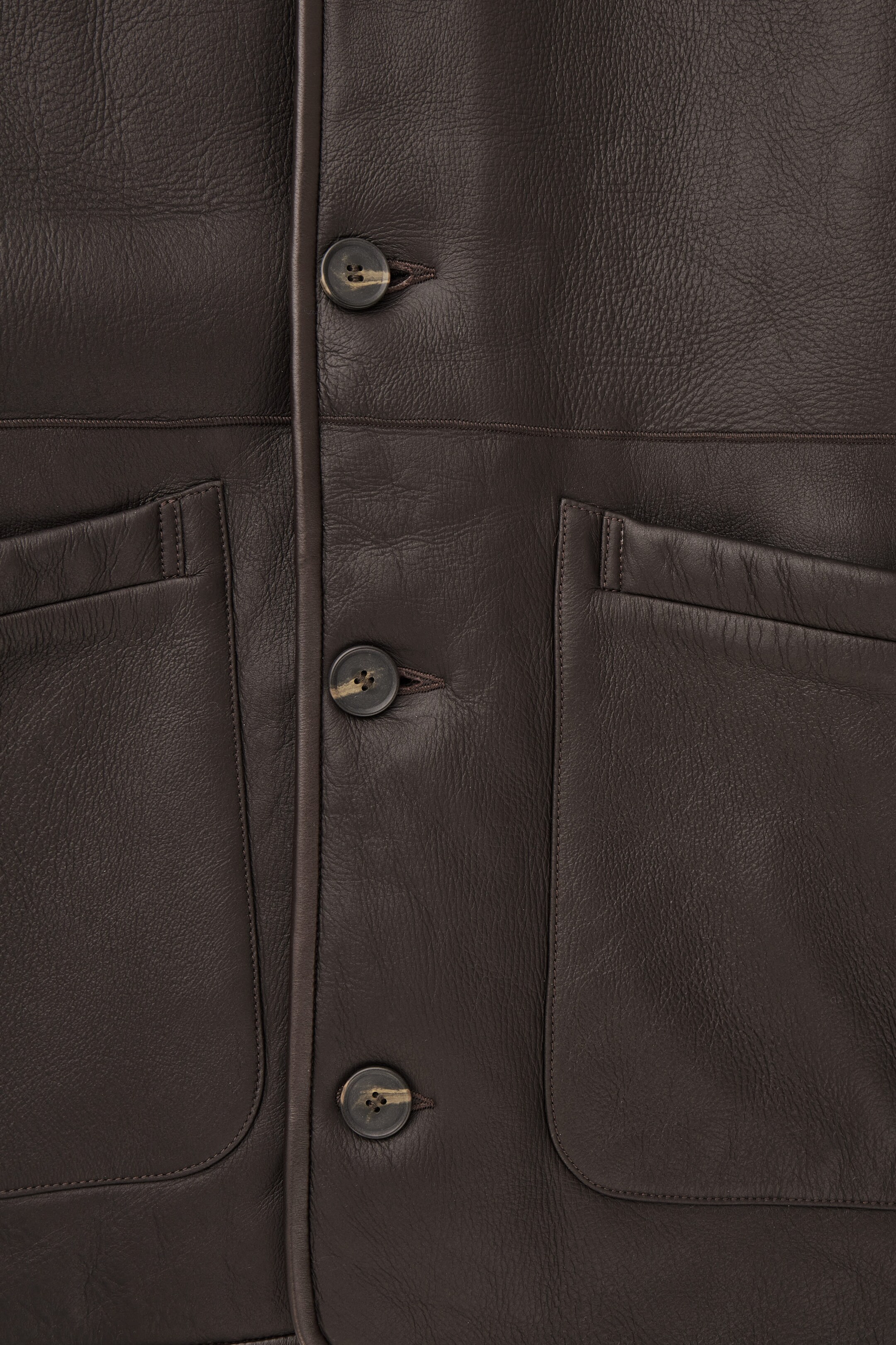 Unser Expertenteam hat sich für das geschmeidigste, hochwertigste Leder entschieden – tragen Sie die genarbte Seite nach außen oder entscheiden Sie sich für die andere Seite aus weichem Shearling. Das Material wird mit der Zeit immer schöner, passt sich Ihrer Körperform an und entwickelt eine ganz eigene Patina. Der satte Braunton ist eine ansprechende Alternative zum klassischen Schwarz.