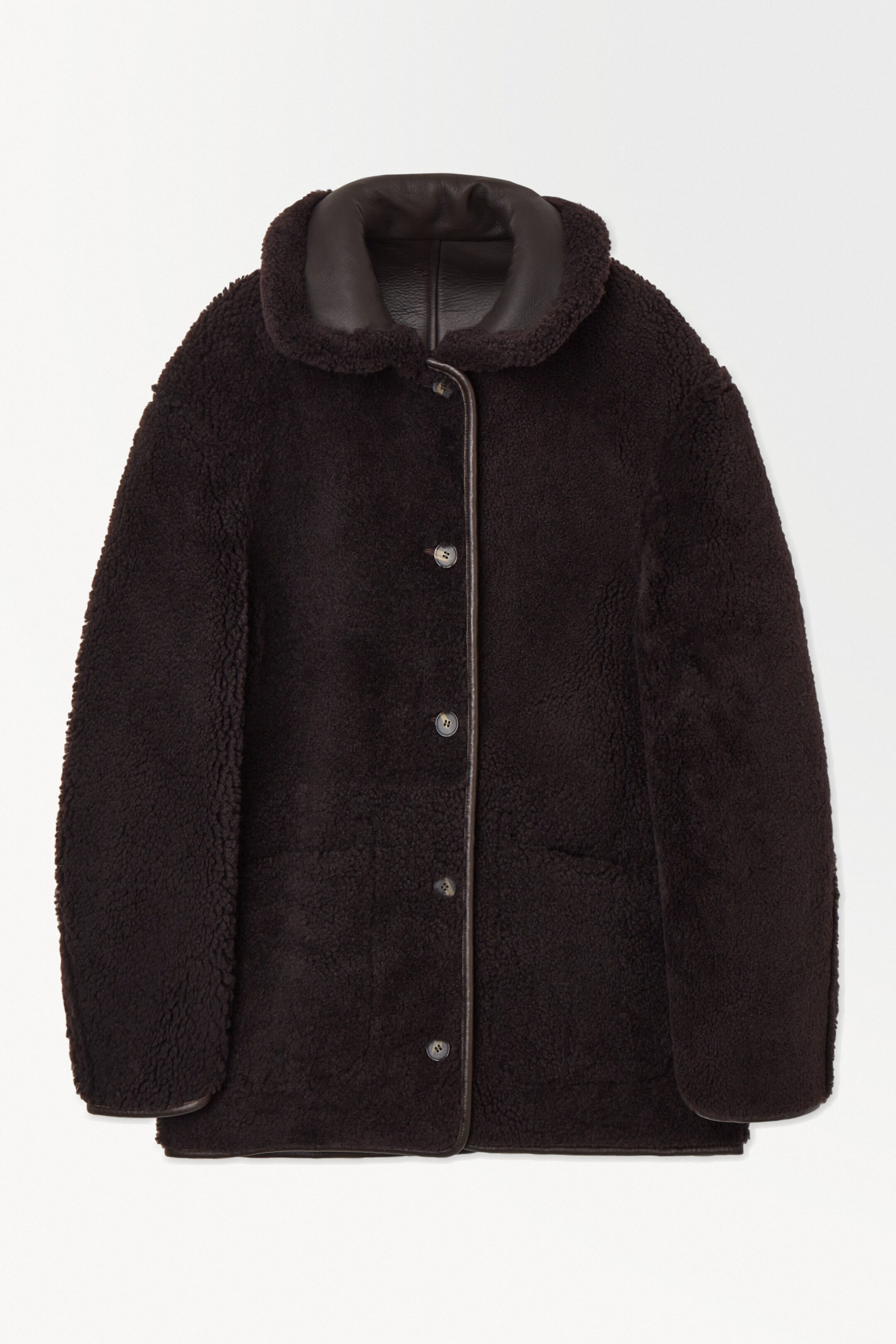 Diese sorgfältig gefertigte Fliegerjacke verkörpert alles, wofür die ATELIER Kollektion steht. Der Klassiker wurde für den Herbst/Winter 2023 neu aufgelegt: Das vollständig wendbare Modell ist großzügig geschnitten und ermöglicht es Ihnen problemlos, im Winter Strickmodelle darunter zu tragen. Die Jacke hat einen spitzen Kragen, eine Reihe farblich passender Knöpfe und tiefe Taschen, die umgeschlagen werden können, damit sie nutzbar sind, egal auf welcher Seite Sie das Modell tragen.