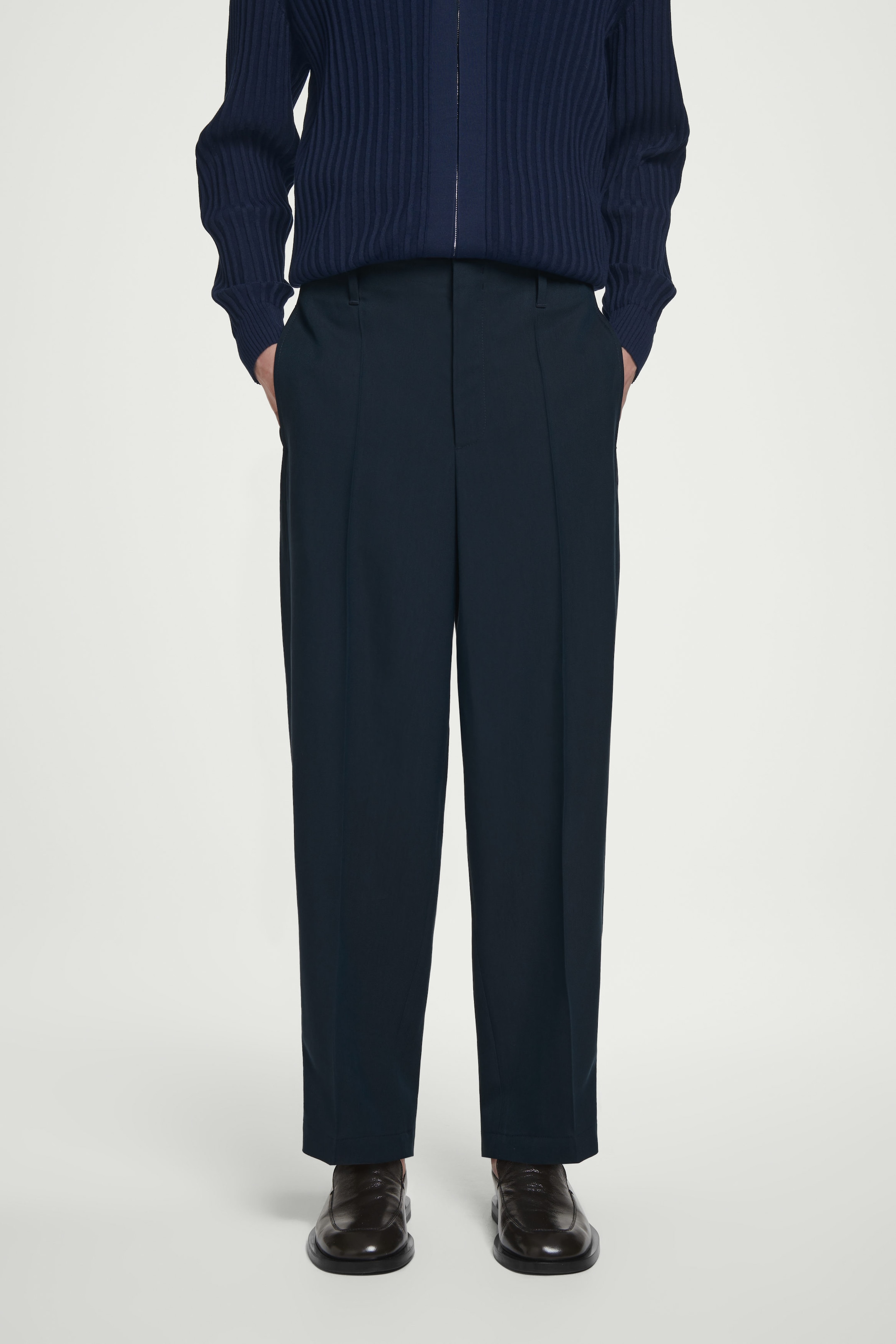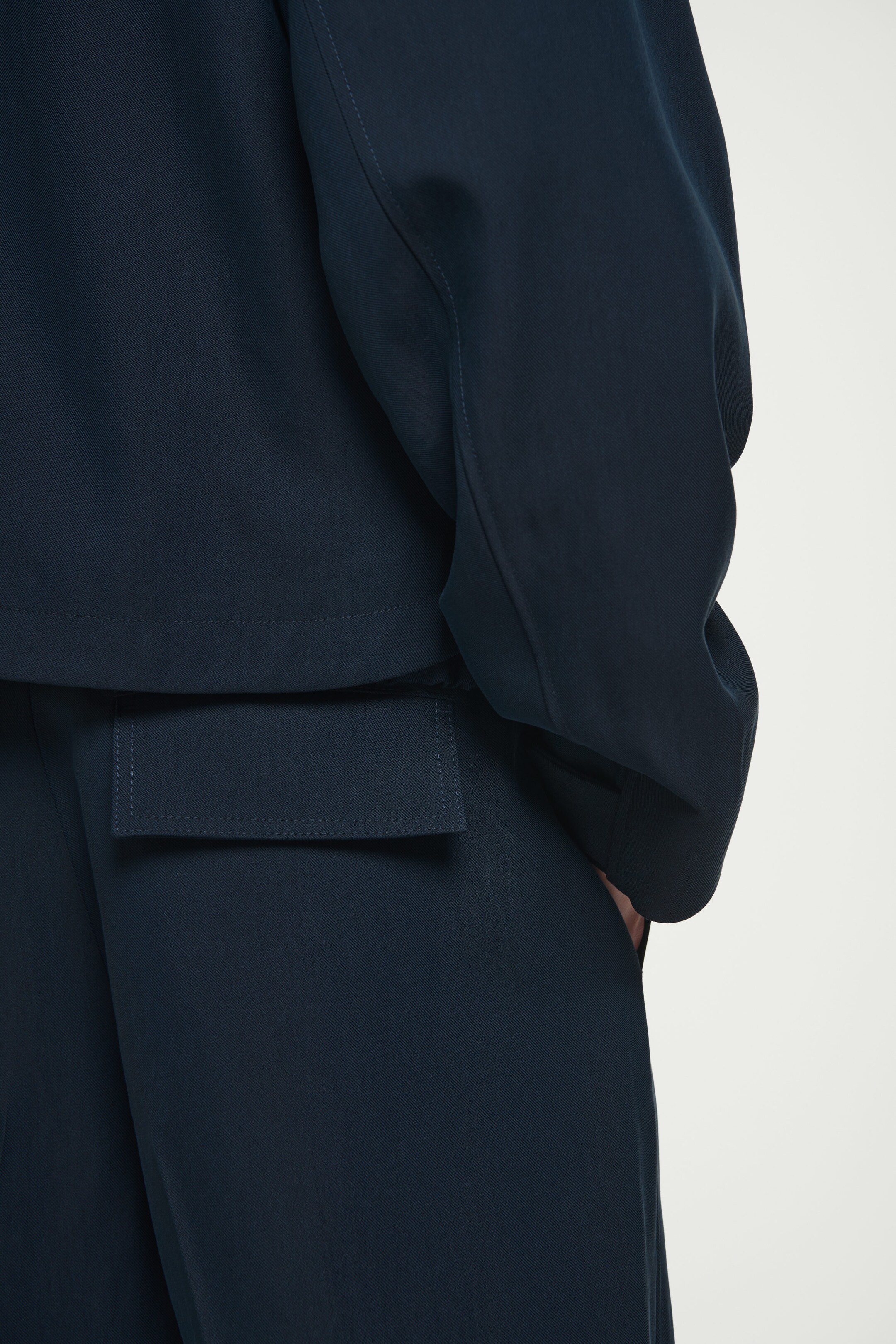 Die Laufstegkollektion für F/S25 von COS basiert auf den Grundsätzen der Marke: nachhaltiges Design und herausragende Handwerkskunst. Diese moderne Chinohose ist eine raffinierte Interpretation von Utility-Designs und besteht aus Twill aus einer leichten TENCEL™ Lyocell-Mischung in Mitternachtsblau. Das knöchellange Modell mit Barrel-Bein hat einen sauber verarbeiteten Bund, Bügelfalten und von der Workwear inspirierte Riegel an den Ärmelabschlüssen. Kombinieren Sie die Hose mit der passenden Jacke.