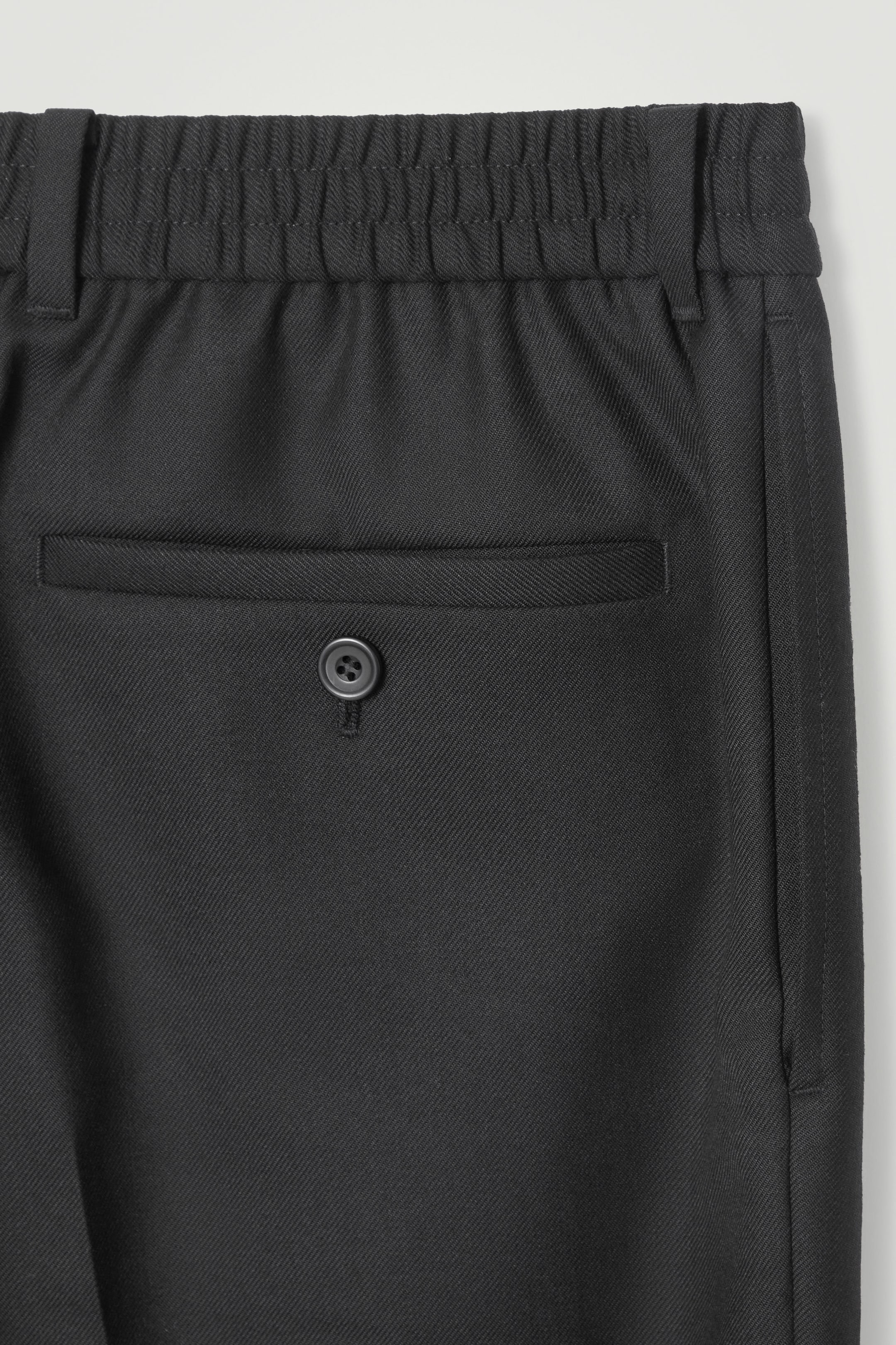 Diese klassisch schwarze Twillhose aus einer RWS-Wollmischung ist ein elegantes Basic für Ihre Garderobe. Das Modell präsentiert sich mit einem weiten Bein, markanten Bügelfalten, modernen Beinumschlägen und einem teilweise elastischen Bund. Kombinieren Sie es mit einem T-Shirt oder dem passenden Hemd.