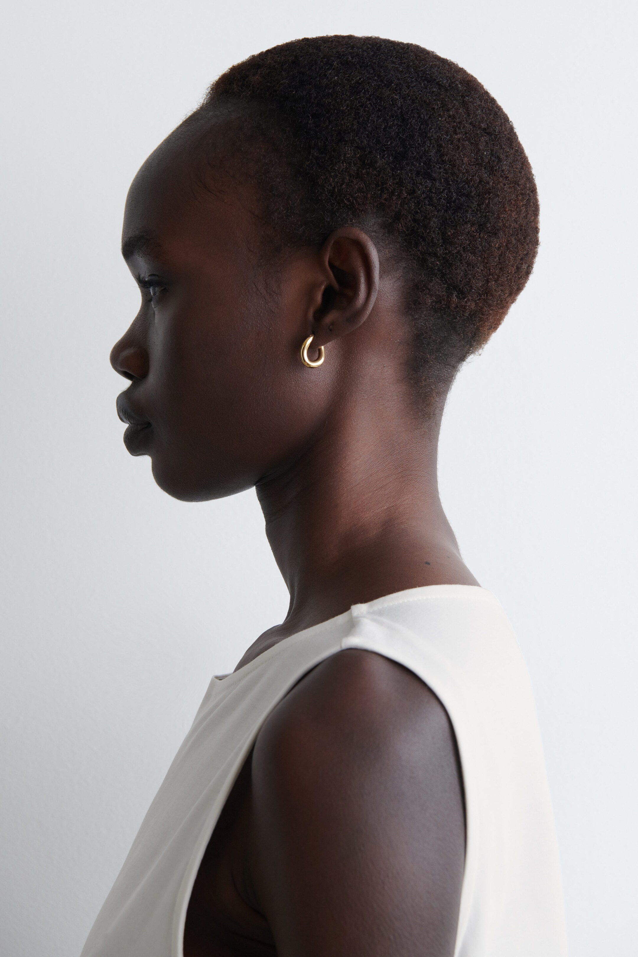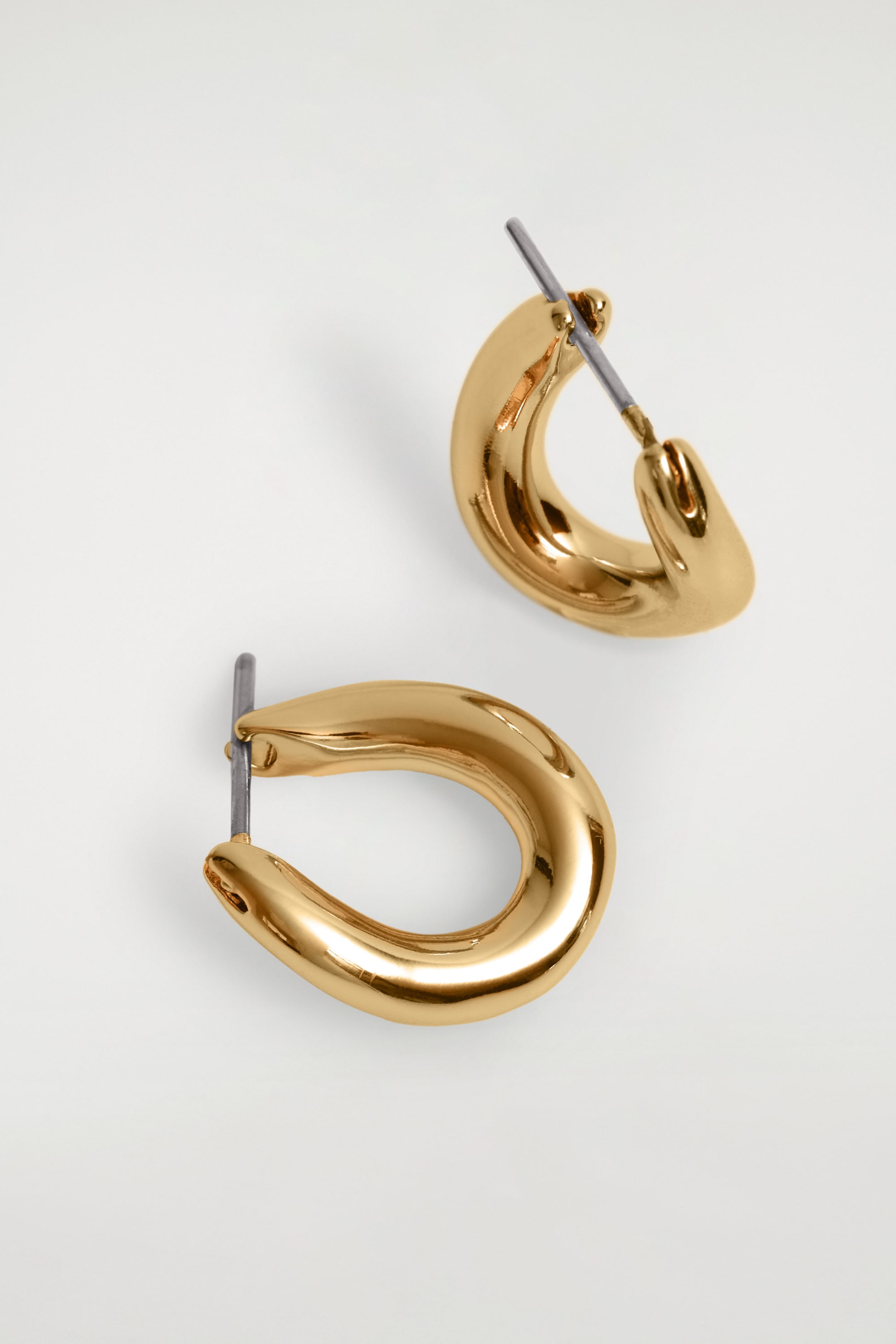 Diese schlichten und zugleich auffälligen Ohrringe sind eine Interpretation klassischer Creolen. Das Paar aus vergoldetem recyceltem Messing hat eine sanft geschwungene Form und verleiht jedem Look den letzten Schliff.