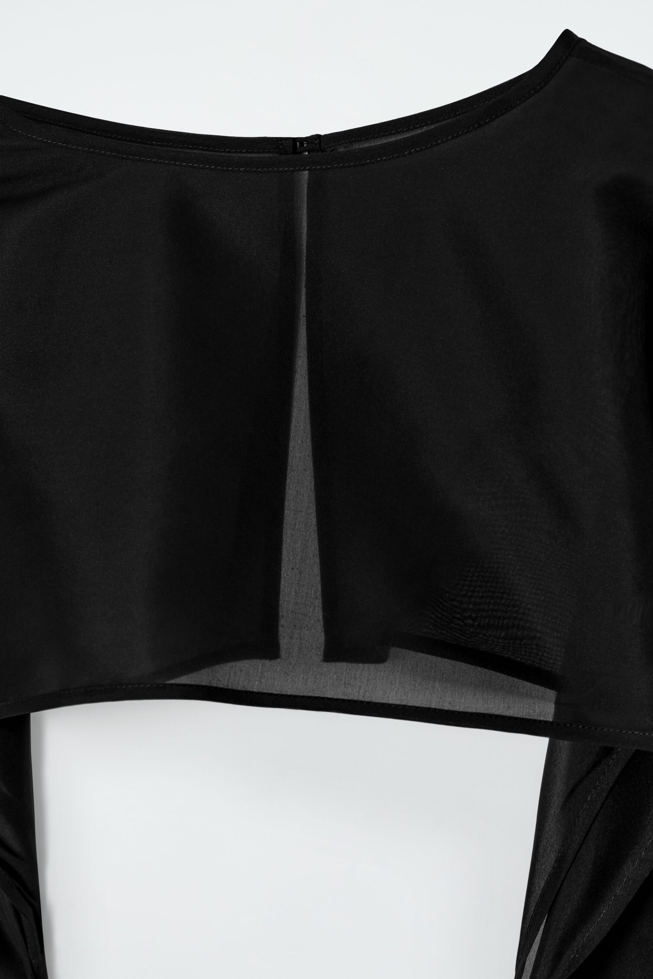 Dieses moderne Hybridmodell verleiht Lagen-Looks eine frische Note. Es besteht aus hauchdünner Maulbeerseide, die aufgrund ihrer fließenden und luxuriös weichen Haptik ausgewählt wurde, und hat voluminöse Ballonärmel. Das Oberteil eignet sich hervorragend zum Kombinieren mit Abendgarderobe wie Slip Dresses oder Bandeau-Kleidern.