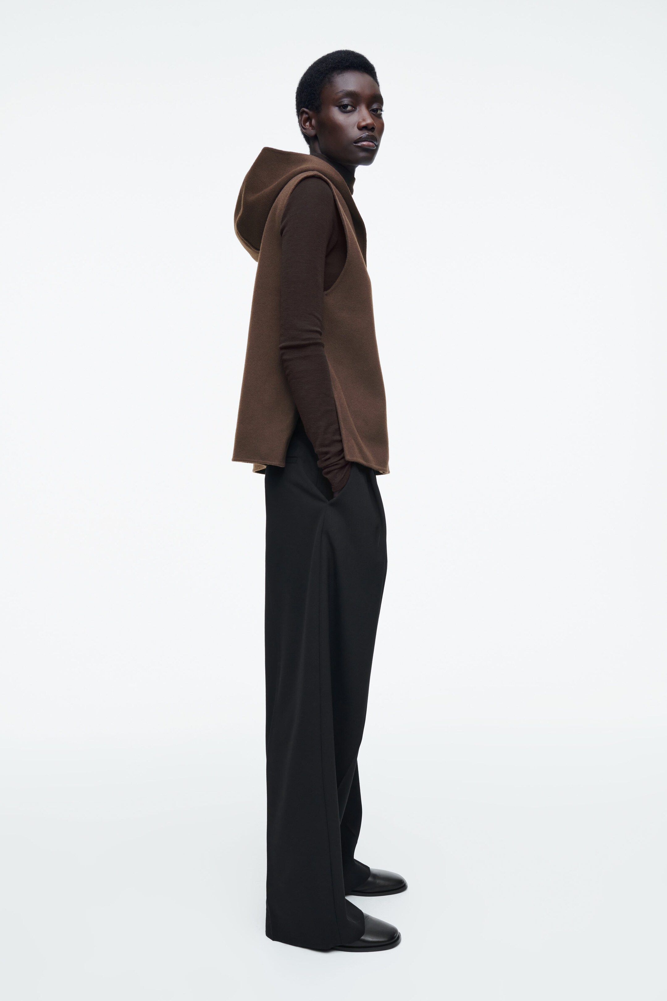Diese moderne, vielseitige Weste mit weiter Kapuze, gebürstetem silberfarbenen Reißverschluss und hohen Seitenschlitzen bietet viel Bewegungsfreiheit und lässt sich in unzählige Lagen-Looks integrieren. Sie wurde aus einer doppelseitigen Mischung aus weicher RWS-Wolle und TENCEL™ Lyocell gefertigt, die besonders langlebig ist und mehr Struktur bietet.