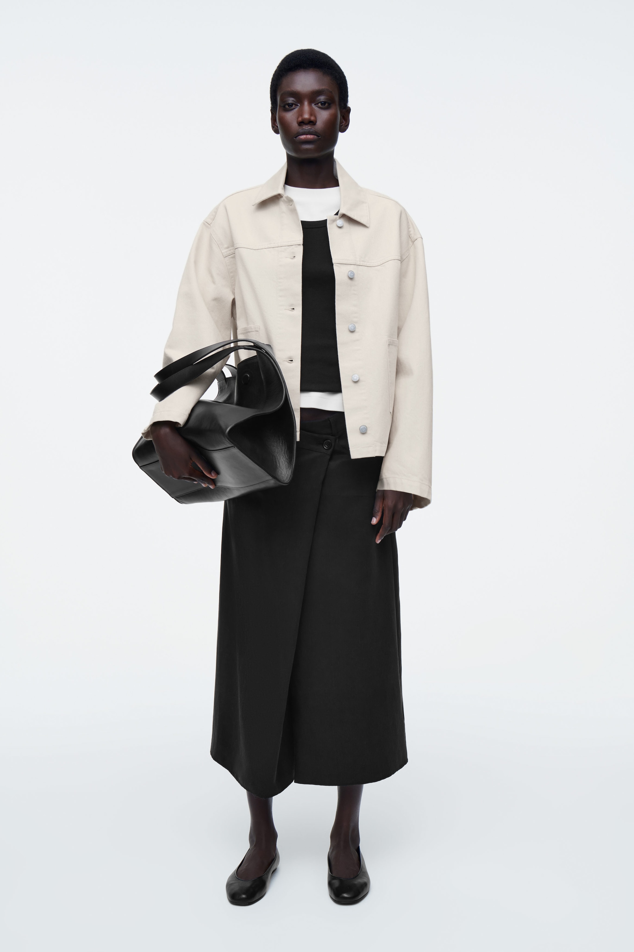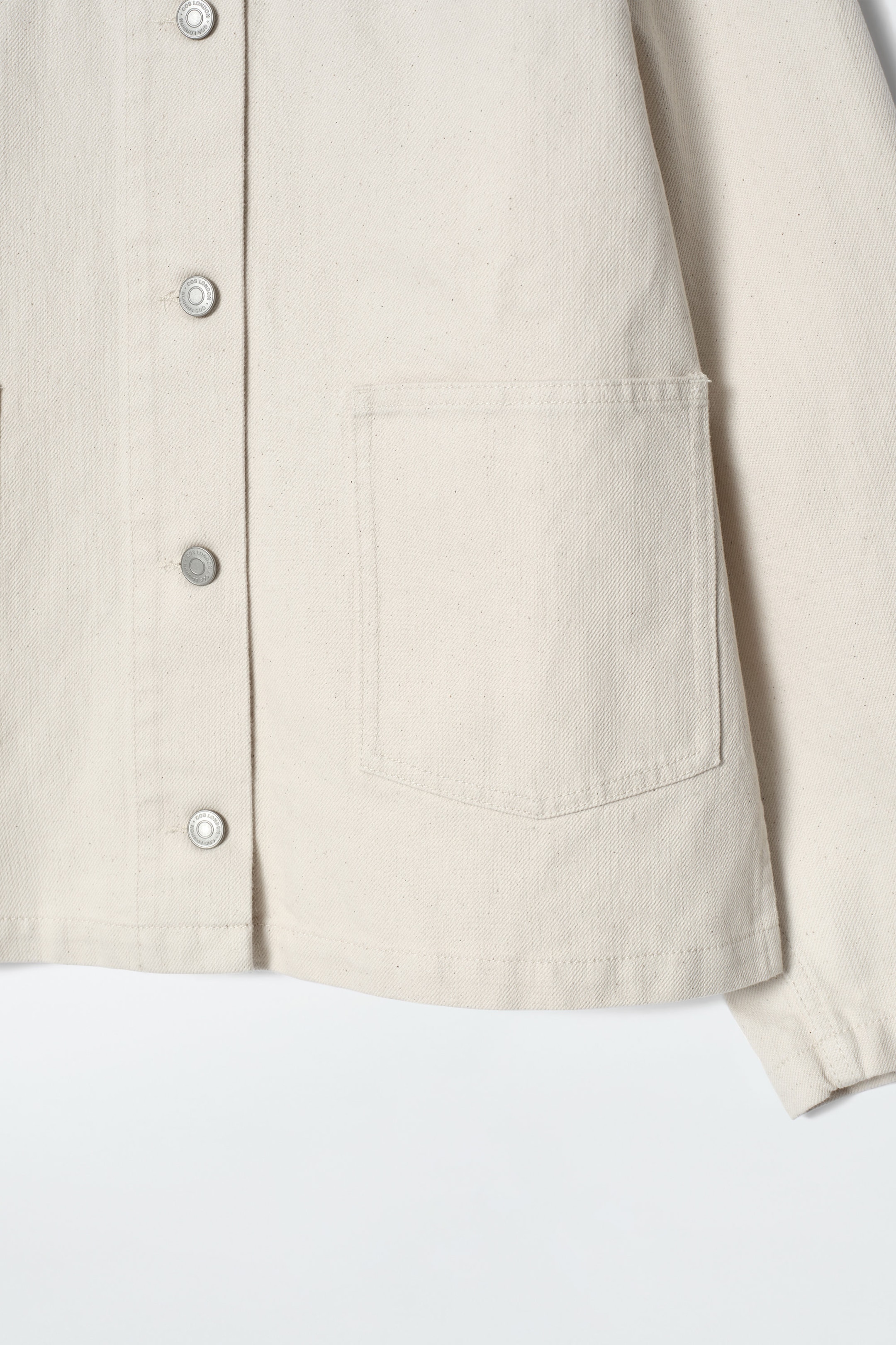 Diese Jeansjacke mit Utility-Akzenten hat aufgesetzte Oversized-Taschen und Seitenschlitze, die die lockere Silhouette unterstreichen. Kombinieren Sie das Modell mit ecrufarbener Waschung mit einer Jeans in derselben Farbe.