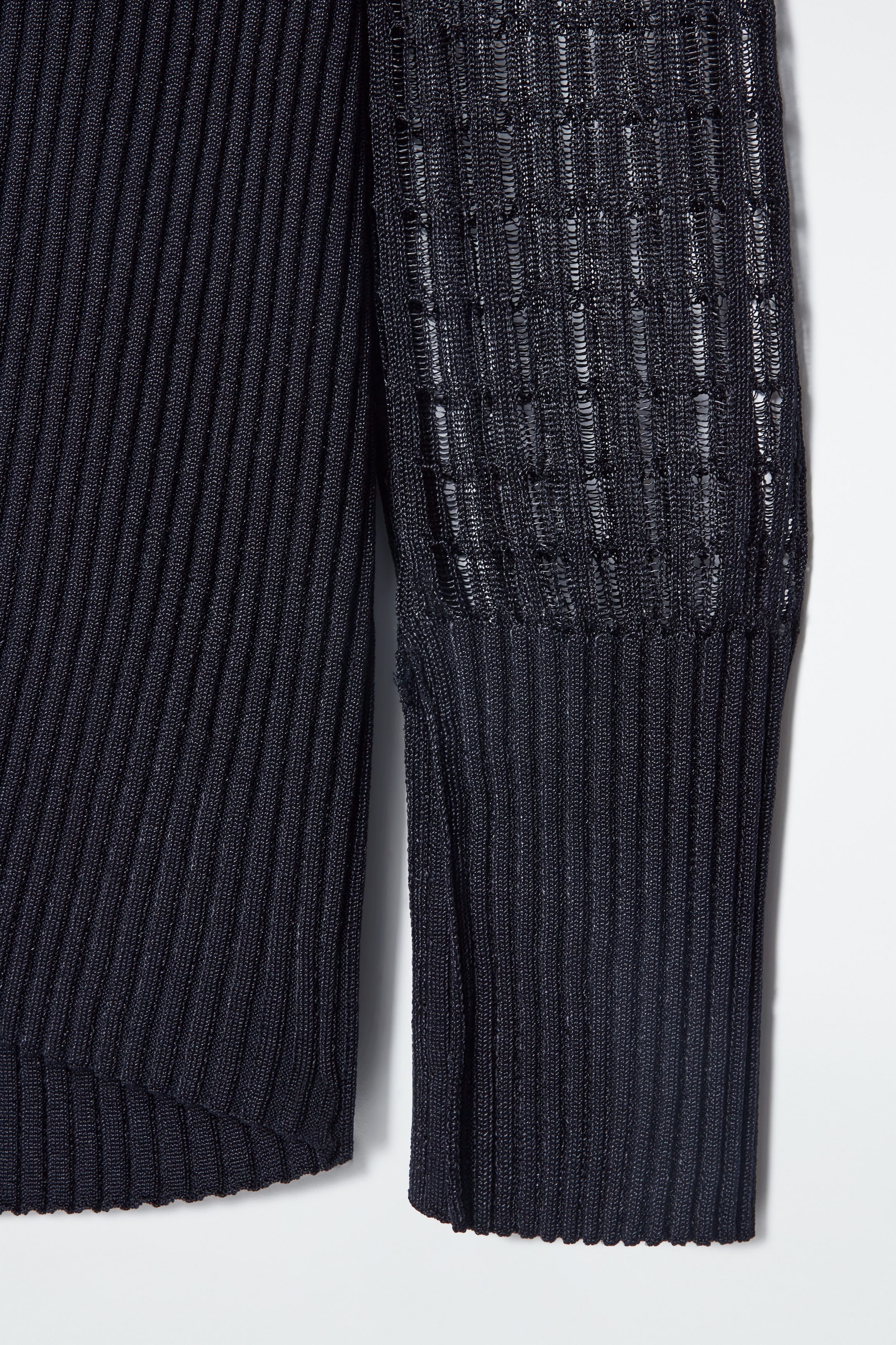 Dieser moderne Cardigan entstand in Anlehnung an beliebte transparente Designs und präsentiert sich mit einem einem Spitzen- und Leitermuster. Das Modell eignet sich ideal für Lagen-Looks und hat einen V-Ausschnitt sowie eine Knopfleiste, die nahtlos in die gerippte Taillenpartie übergeht und so für eine fließende Silhouette sorgt, auch wenn Sie das Modell über Jeans oder eleganten Hosen tragen. Vervollständigen Sie das Set mit dem passenden Rock und einem Bralette.