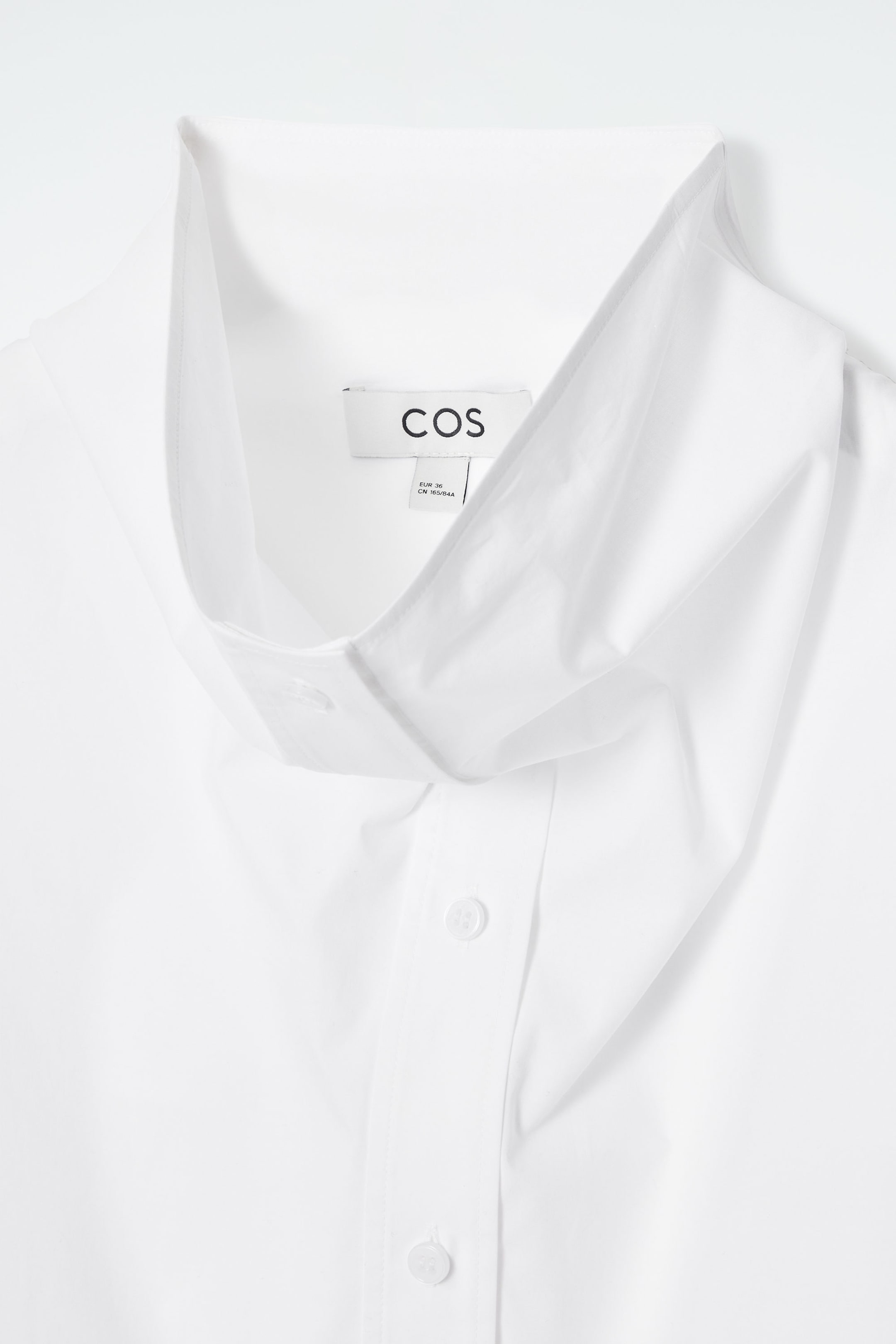 In dieser Saison hat das Damenmode-Team von COS das klassische Baumwollhemd mit unerwarteten Akzenten versehen. Dieses locker geschnittene Modell hat einen modernen Stehkragen, den Sie alternativ auch öffnen und als gespreizten Kragen tragen können. Abgerundet wird das Hemd durch farblich passende Perlmuttknöpfe an der Knopfleiste und an den Manschetten.