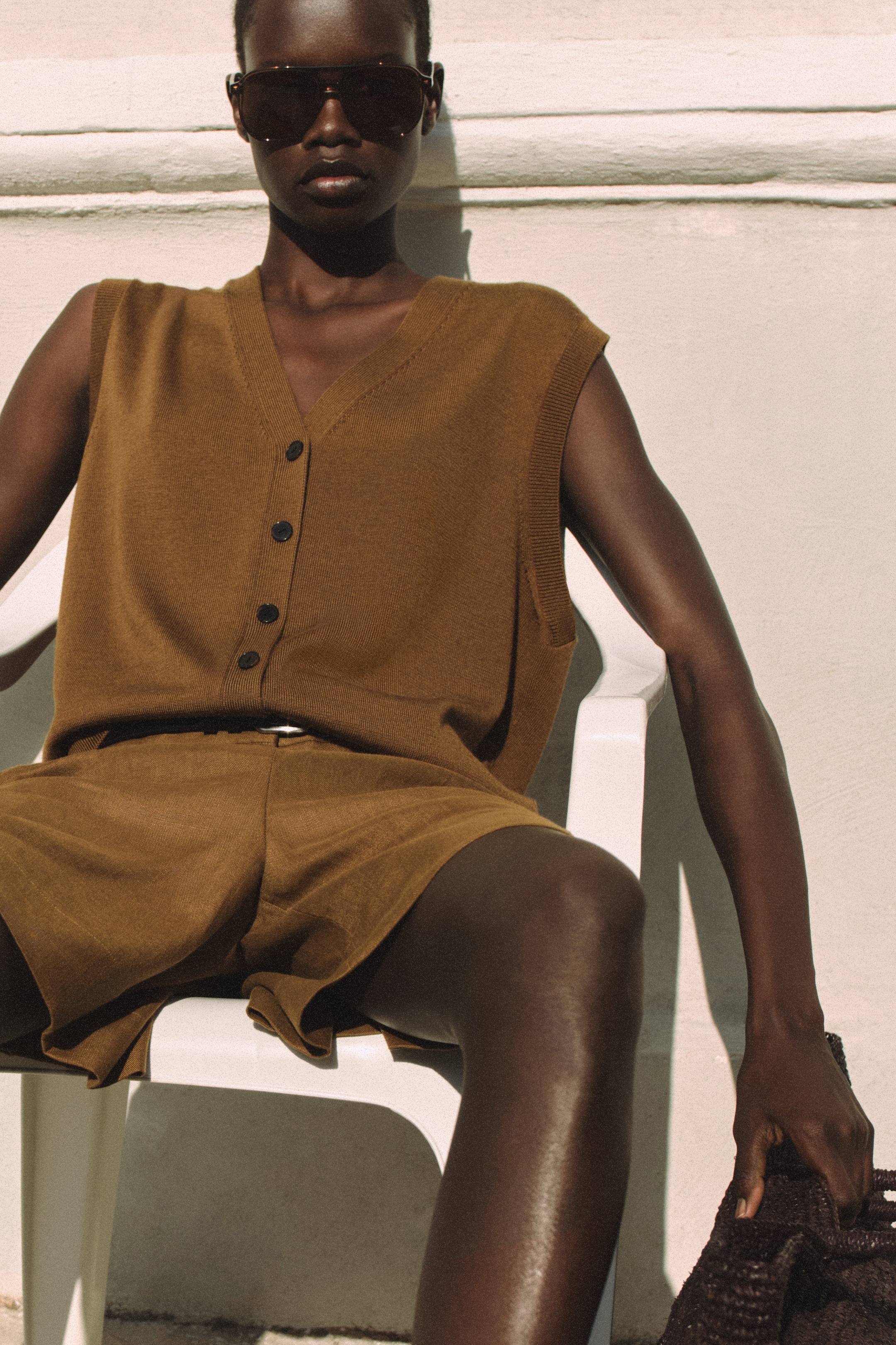 Das charakteristische Midikleid aus schwarzem Leinen ist wie geschaffen für minimalistische Sommer-Looks. Unerwartet kombiniert mit einem Armreif oder einem auffälligen Anhänger wird es zum perfekten Abendbegleiter. Ein Maxikleid in A-Linie mit voluminösen Kellerfalten lässt sich tagsüber mit Ledersandalen und den wellenförmigen Schmuckstücken der Saison in Szene setzen, abends kann man zu Absatzschuhen oder dezenten Lederballerinas wechseln. Kombinieren Sie außerdem leichte, komfortable Oversized-Hemdkleider aus Leinen in der Stadt mit einer Sonnenbrille, einer Tasche aus Bast und den minimalistischen Sneakers der Saison.