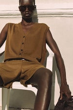 Shorts aus Leinen mit einem passenden ärmellosen Oberteil im Erdton der Saison ergeben das perfekte Outfit für einen Ausflug in die Stadt bei sommerlichem Wetter. Oder wie wäre es mit einer kurzen Hose mit elastischem Bund aus gelbem Leinen, kombiniert mit dem passenden kastenförmigen Hemd als Alternative zum sommerlichen Hemdblusenkleid? Ein moderner Kontrast entsteht, wenn Sie eine schicke lange Hose mit einem schlichten T-Shirt kombinieren, das in den Bund gesteckt wird. Abgerundet wird der Look mit Loafern aus Leder, um die Balance zwischen smart und leger zu schaffen.