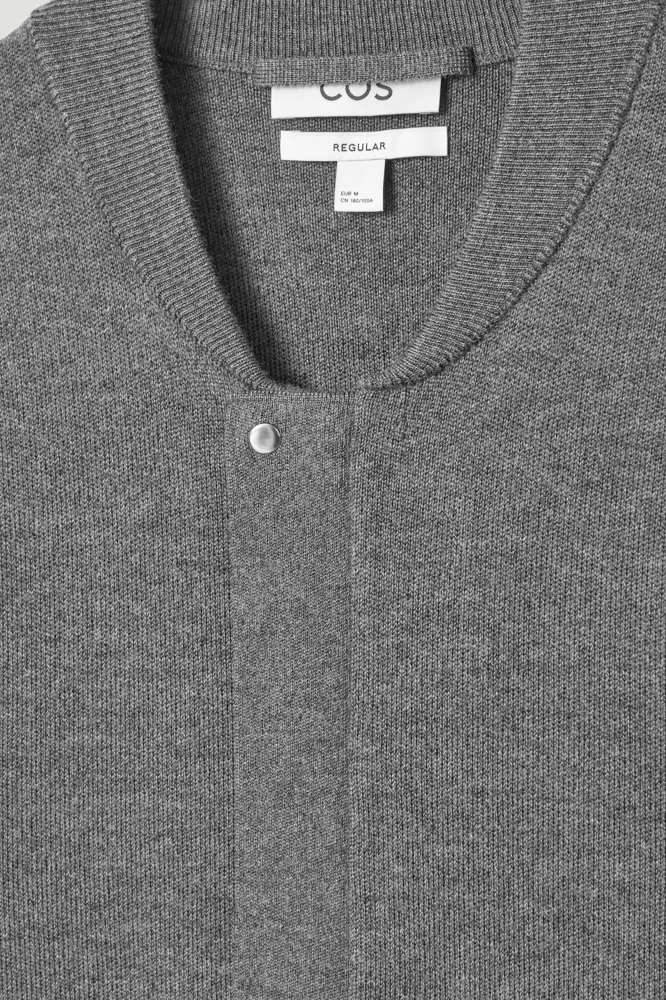 Diese moderne Bomberjacke ist eine elegante Interpretation klassischer Sportswear-Designs und wurde aus weicher, wärmender RWS-Wolle gestrickt. Das normal geschnittene Modell hat einen gerippten Stehkragen, Leistentaschen und eine verdeckte Reißverschlussleiste mit silberfarbenen Druckknöpfen an beiden Enden.