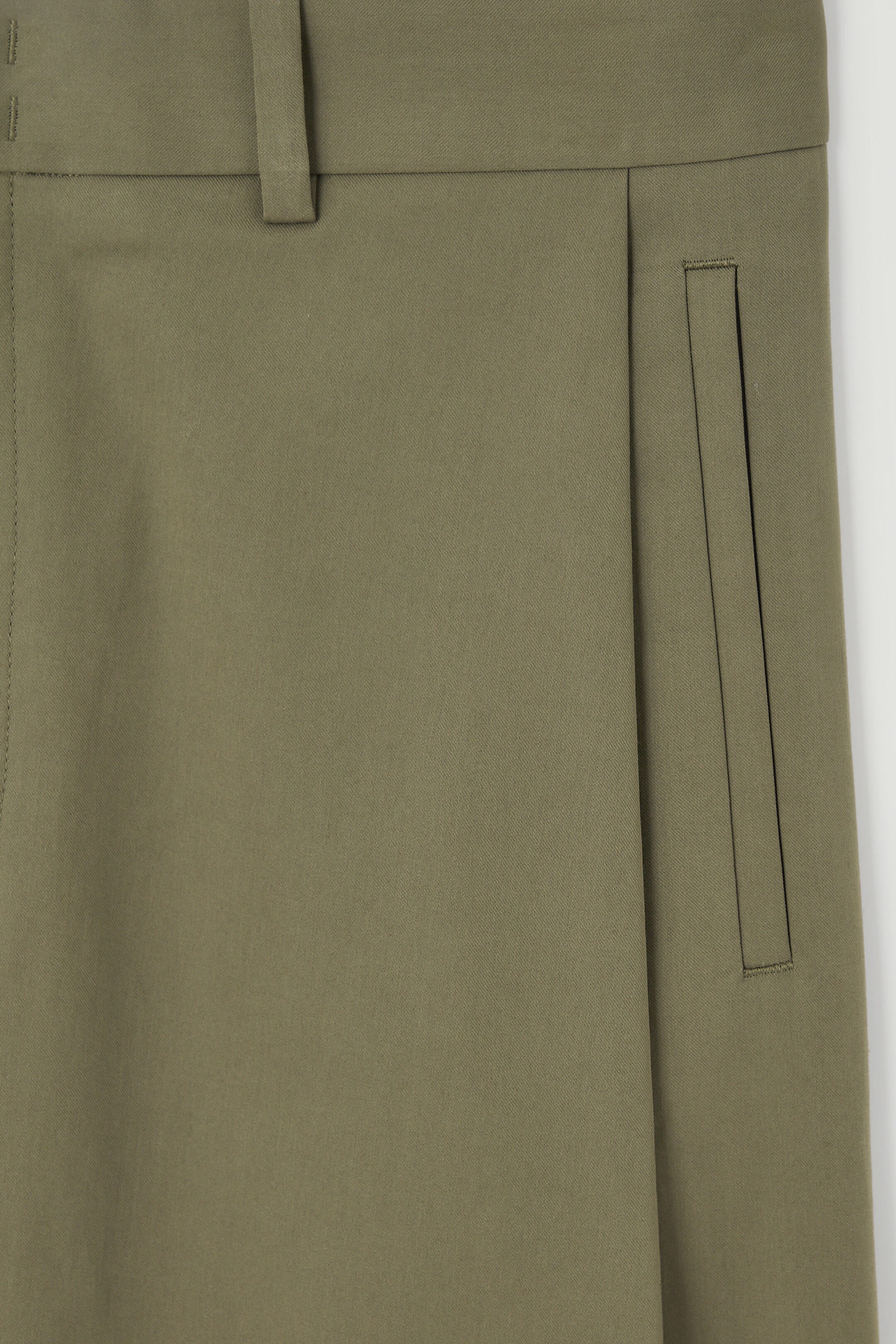Diese khakifarbene Hose ist eine unbeschwerte Interpretation von elegantem Tailoring. Das Modell aus Baumwolle hat ein weites Bein, das durch markante Falten an der Seite betont wird. Tragen Sie dazu ein Hemd mit Reverskragen und Sandalen.