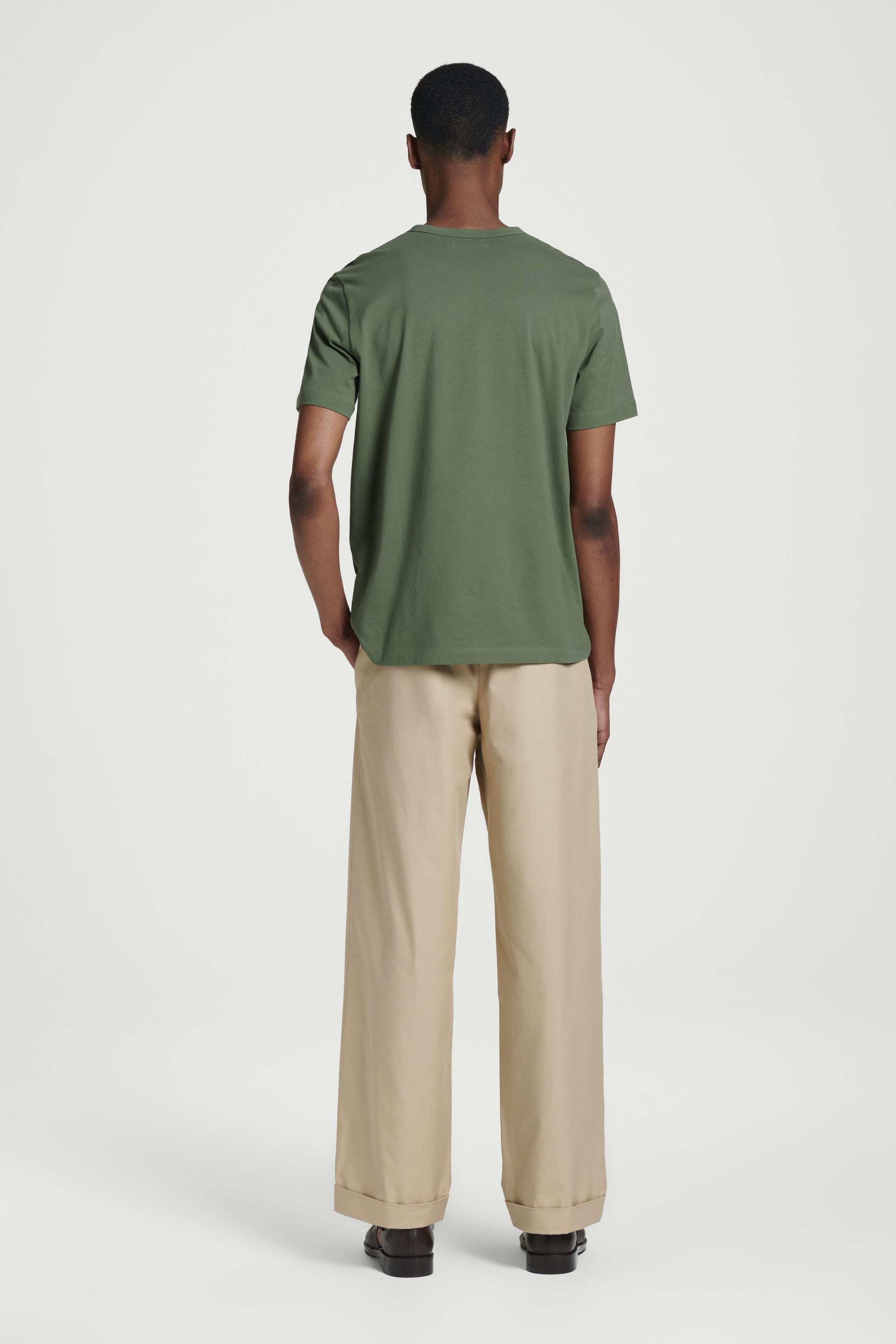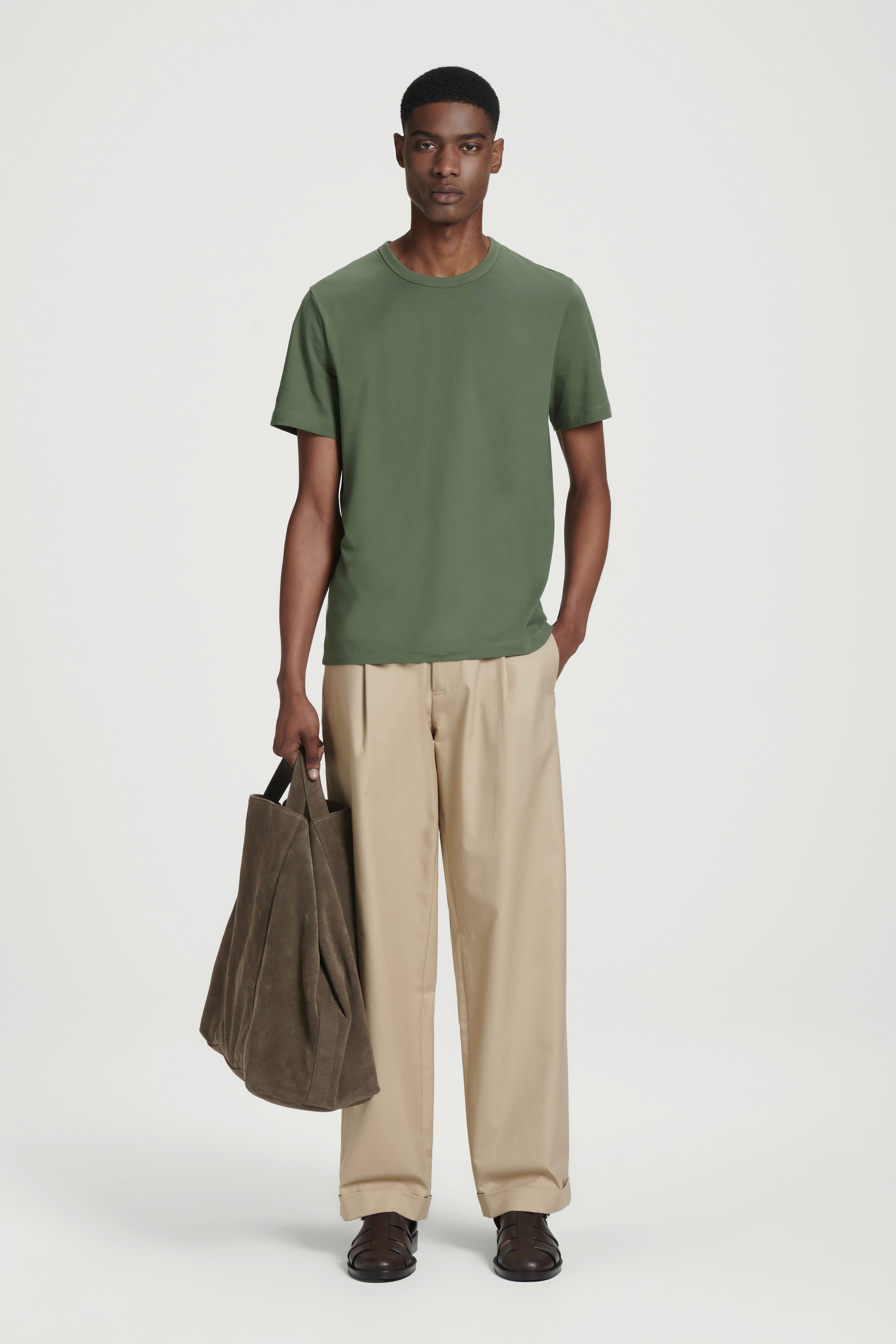 Das T-Shirt aus gebürsteter Baumwolle war vom ersten Tag an ein Eckpfeiler unserer Kollektion – und das aus gutem Grund: Es besteht aus weichem Baumwolljersey und ist trotz seines Gewichts von 160 g/m² leicht genug für Lagen-Looks. Das klassisch geschnittene Modell in Khaki bietet an Brust und Armen angenehme Bewegungsfreiheit.