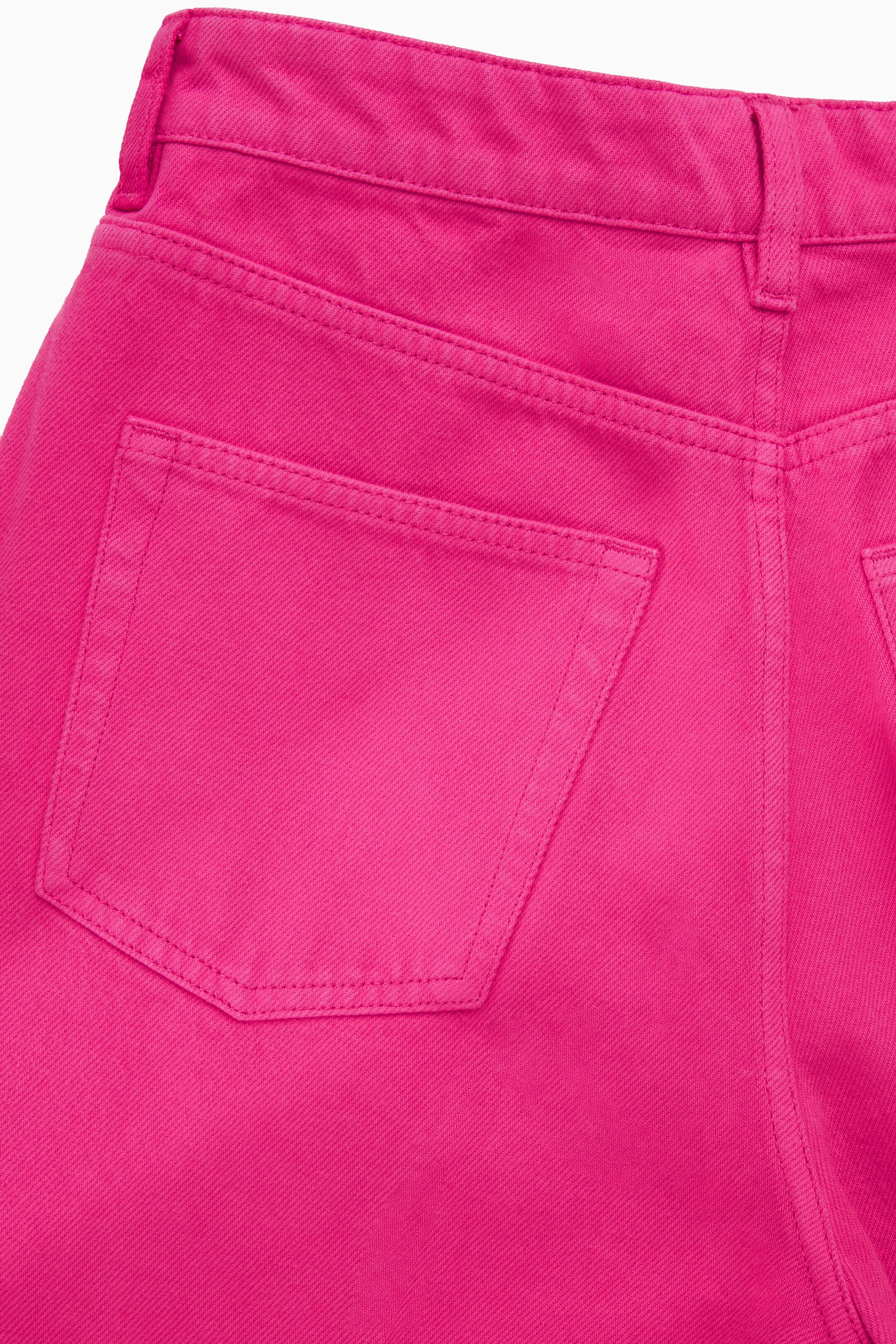 Diese Jeans mit hohem Bund wurde aus Denim aus Biobaumwolle gefertigt und hat ein weites, gerades Bein. Das Distressed-Modell in auffälligem Pink ist besonders lang und lässt sich daher sowohl mit hohen als auch flachen Schuhen kombinieren.
