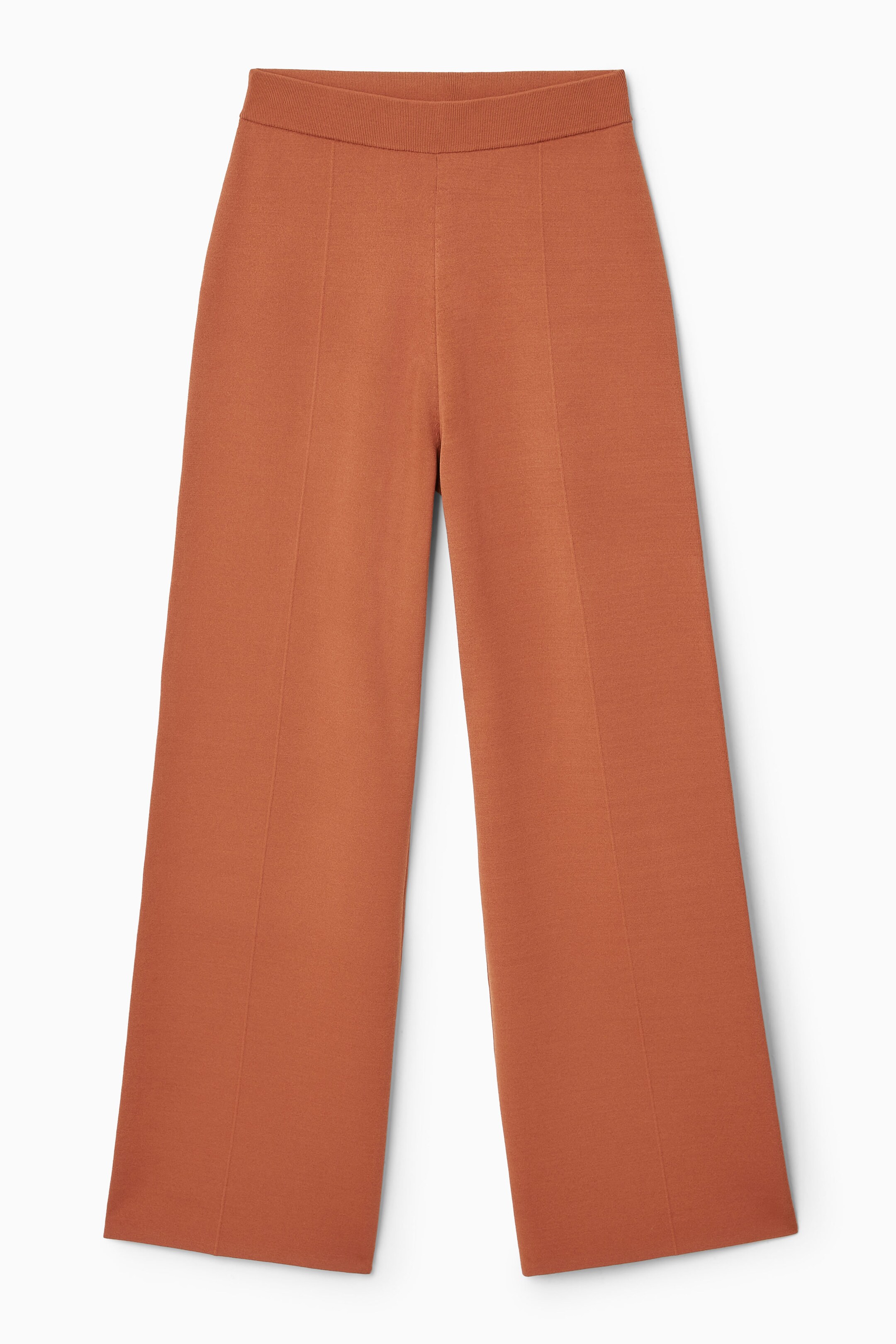 Diese raffinierte Hose in Orange besteht aus einem luxuriösen Doubleface-Strickmaterial. Das Modell wurde ohne Seitennähte entworfen und fällt daher besonders schön. Darüber hinaus hat es einen elastischen Bund und Biesen an der Vorder- und Rückseite. Tragen Sie das passende Poloshirt dazu.