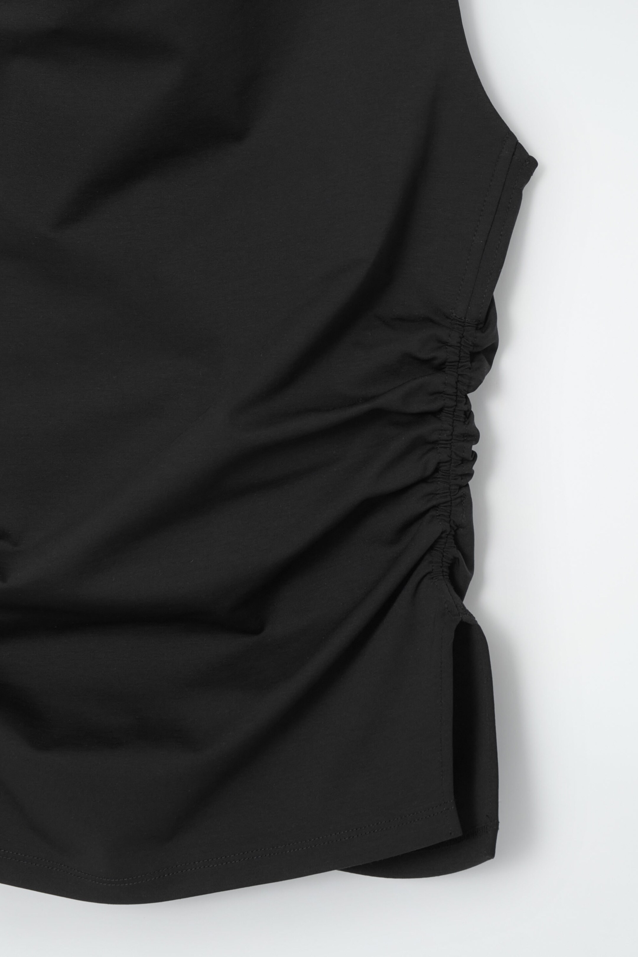 Elegante Garderoben-Basics wie dieses ärmellose Oberteil gehören zu unseren Markenzeichen. Das Modell aus einer Baumwollmischung hat einen Wasserfallkragen sowie geraffte Details an den Seiten, die Ihre Silhouette betonen und etwas mehr Volumen erzeugen. Tragen Sie eine Hose mit weitem Bein und Mules dazu.