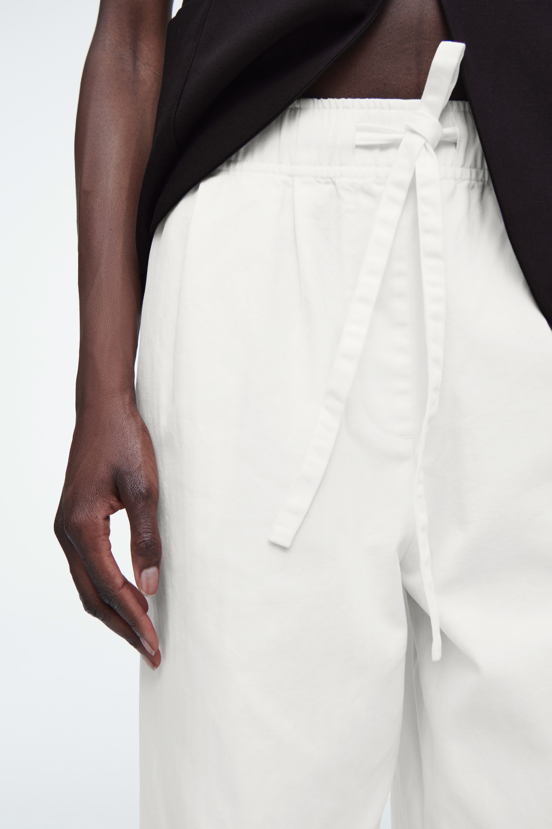 Diese Hose verleiht Ihrer Freizeitgarderobe einen Hauch von Eleganz. Sie besteht aus griffiger, leichter Baumwolle und hat einen Kordelzugbund, Faltendetails und ein lockeres, an den Knöcheln schmal zulaufendes Bein.