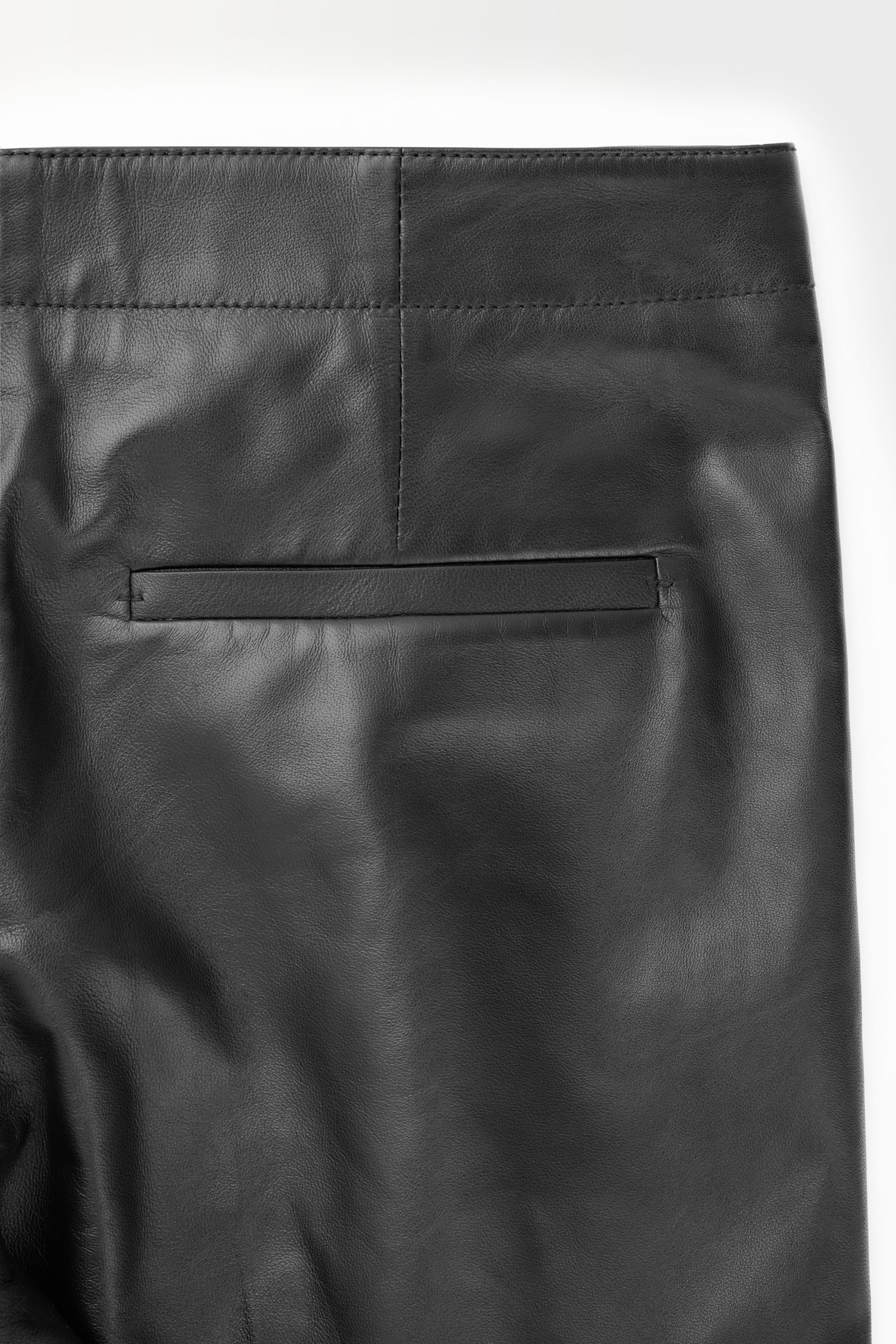 Eine hochwertige Lederhose kommt nie aus der Mode. Diese ausgestellte Variante aus der ATELIER Capsule-Kollektion präsentiert sich mit Elementen klassischen Tailorings, darunter die markante Bügelfalten und Leistentaschen. Tragen Sie den passenden Blazer dazu und kreieren Sie so einen modernen Anzug.