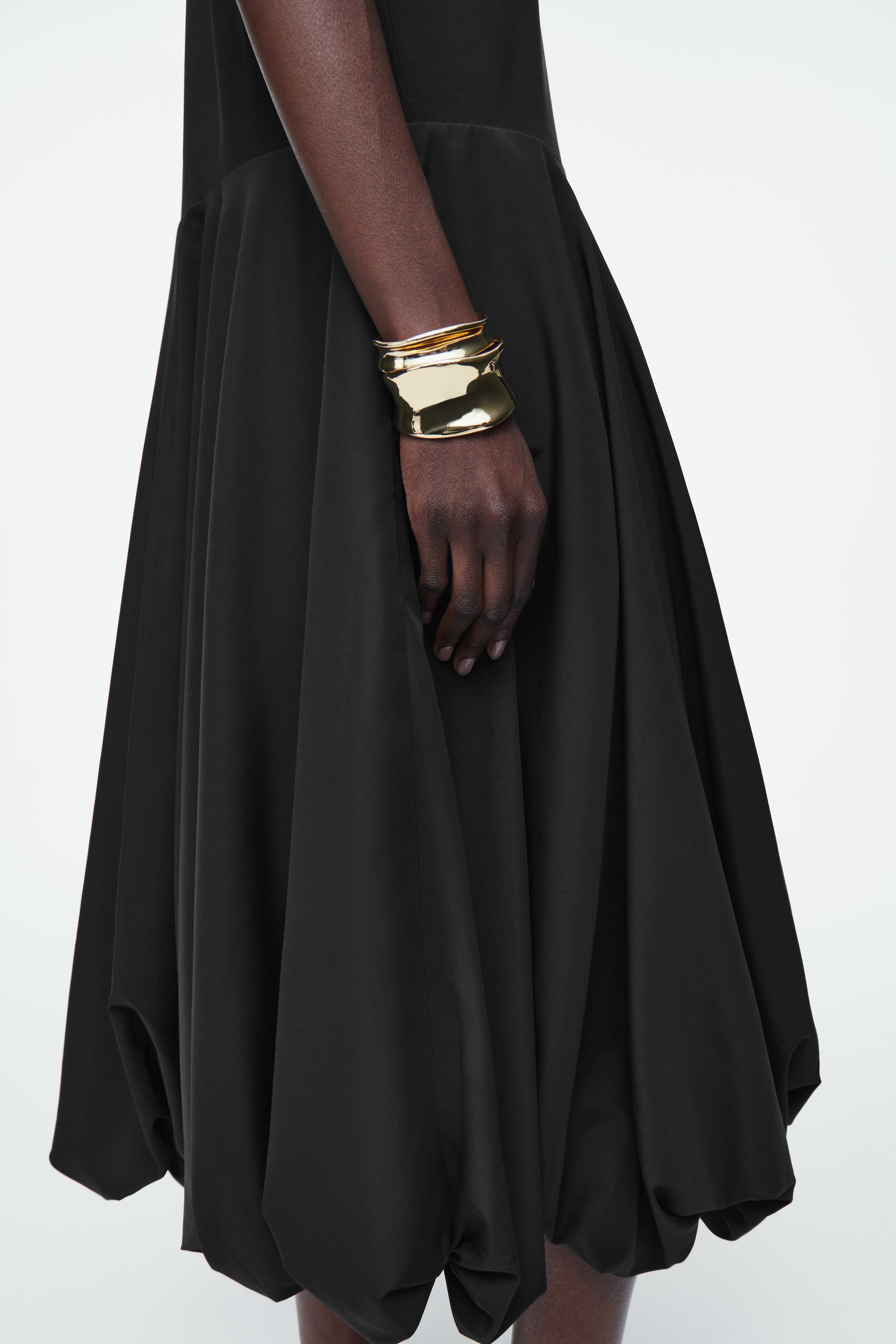 Unser Team für Damenmode interpretiert das T-Shirt-Kleid für Frühjahr/Sommer 2025 mithilfe von Einflüssen aus den 80er-Jahren neu. Dieses Modell spielt mit Texturen – es besteht aus einem weichen Oberteil aus Baumwolljersey und einem dezent kontrastierenden gewebten Rock. Das Kleid hat zudem einen Rundhalsausschnitt, kurze Ärmel und einen voluminösen Ballonsaum.