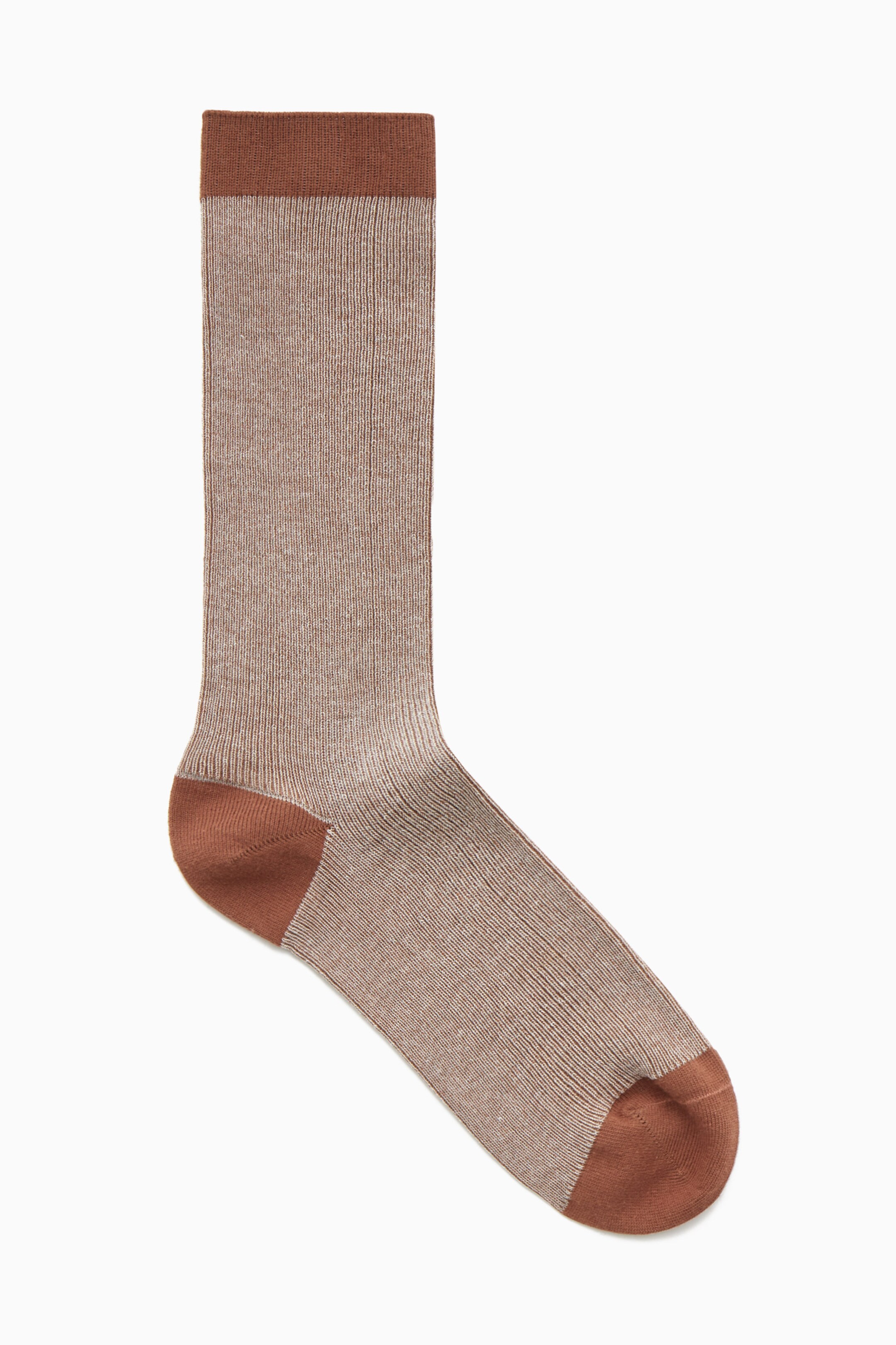 These comfortable socks are made from a soft blend of mercerised organic cotton and recycled fabric with bright colour-blocked trims. The ribbed cuffs mean they'll stay in place throughout the day.