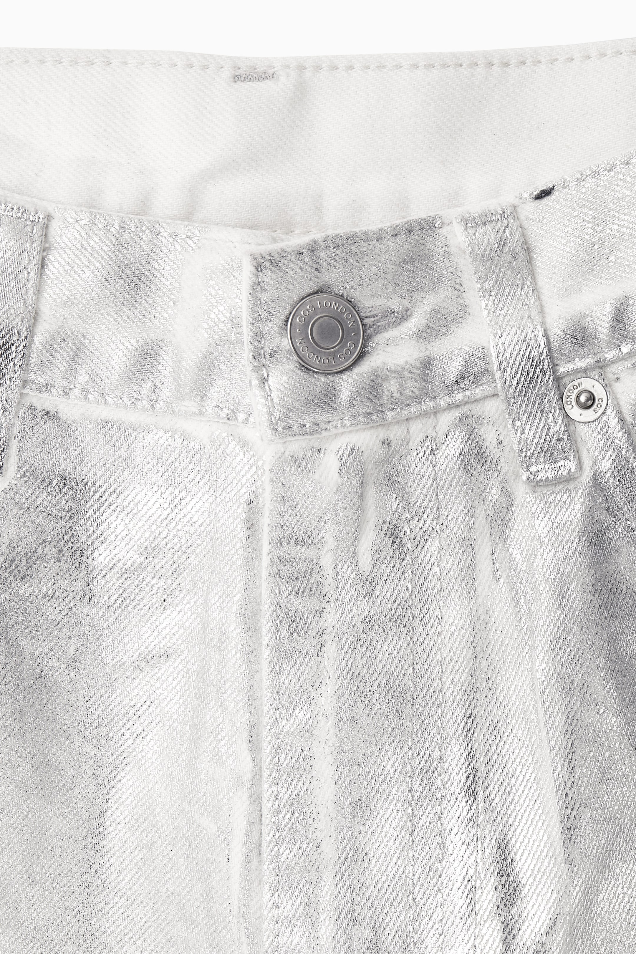 This season, the COS womenswear team have experimented with fabrics and treatments on our signature denim styles. Cut with loose, straight legs, these Column jeans are crafted from organic- and recycled cotton-blend denim that's coated to give them a metallic silver sheen. Our stylists like them with an oversized blazer and a pair of point-toe pumps.