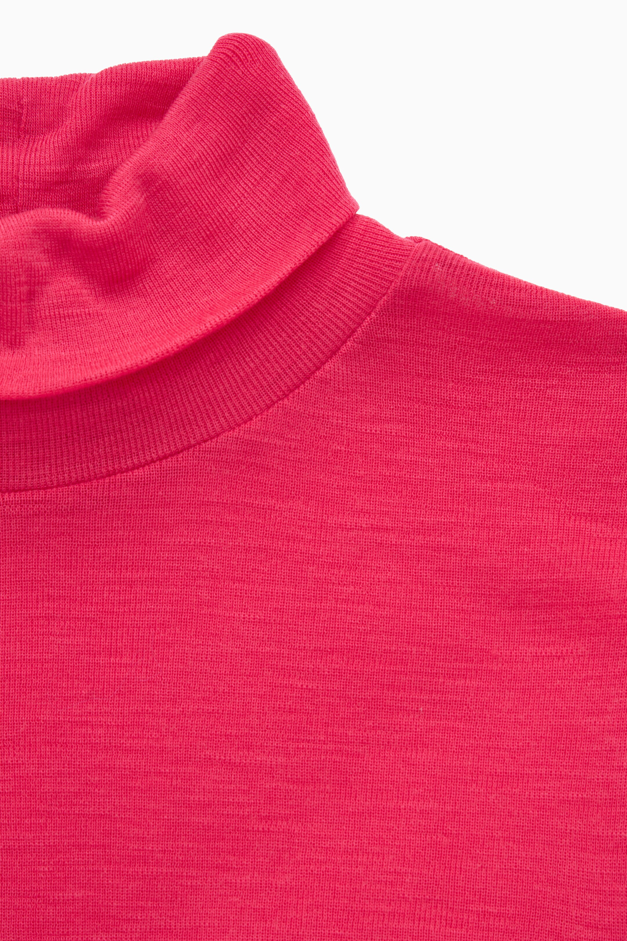 This classic piece is crafted from fuchsia-pink traceable merino wool and features a high roll-neck collar. It has a neat slim fit, making it the perfect layering piece for between the seasons.