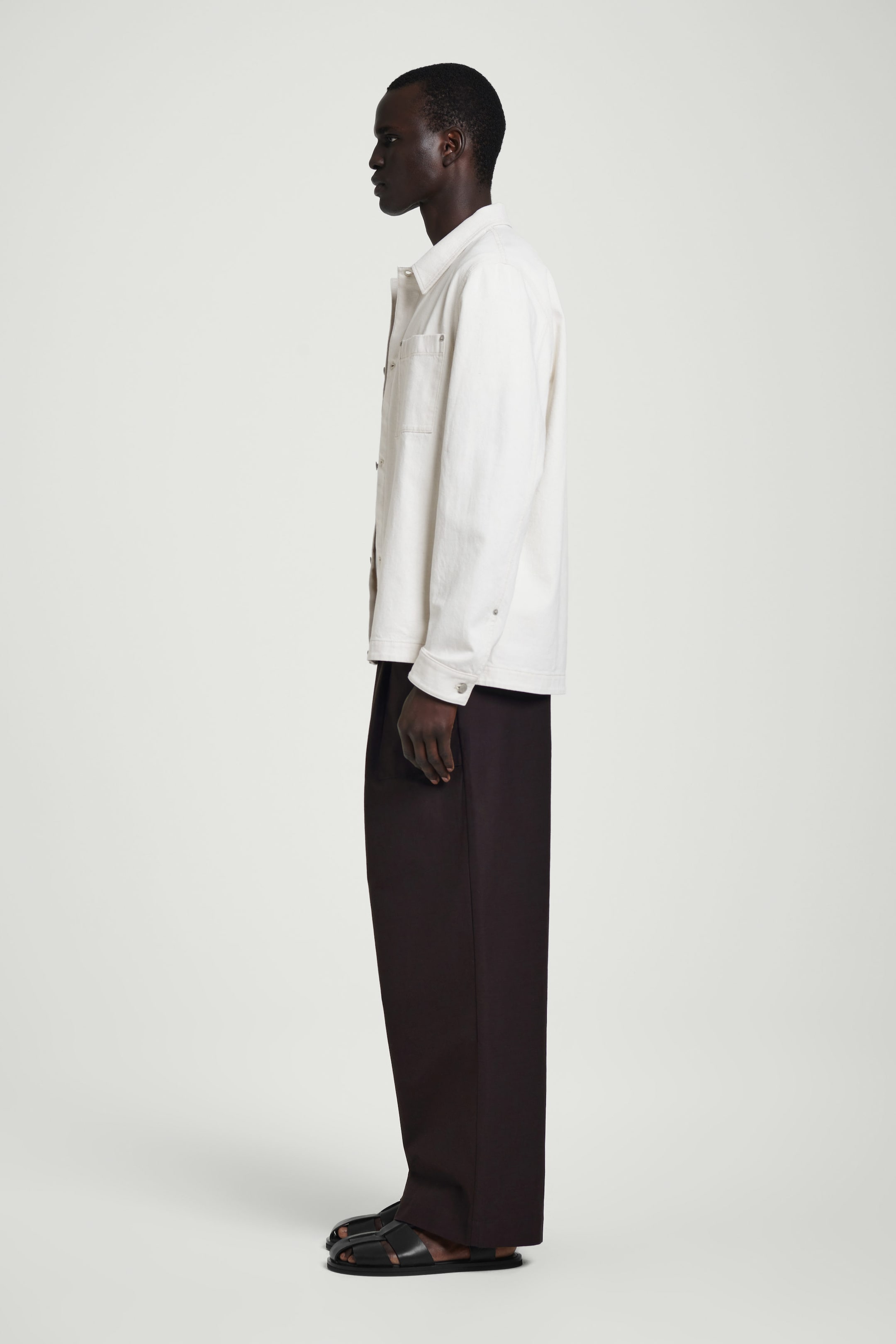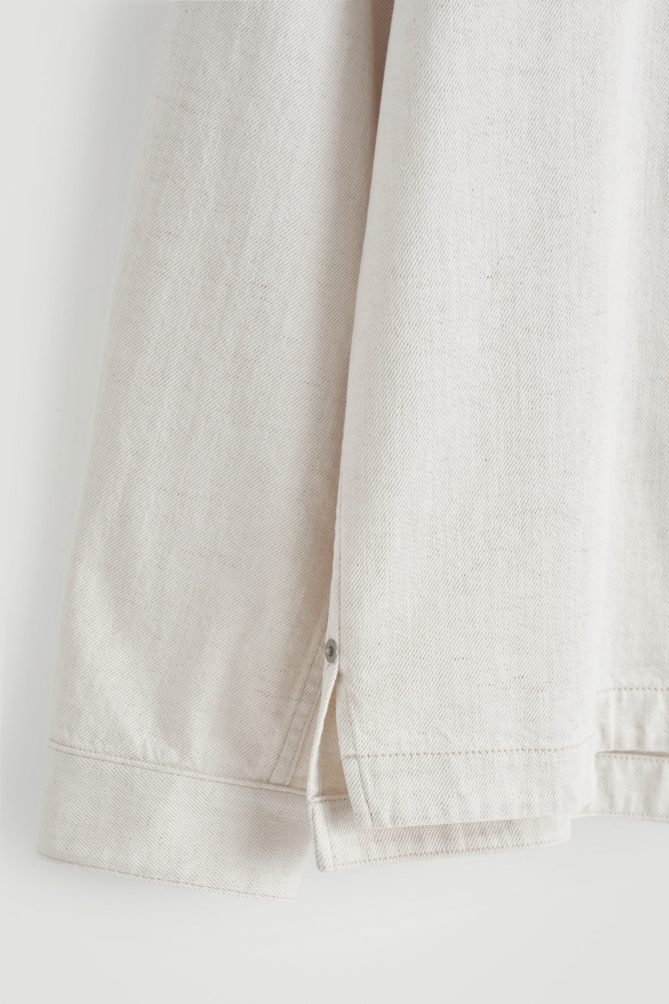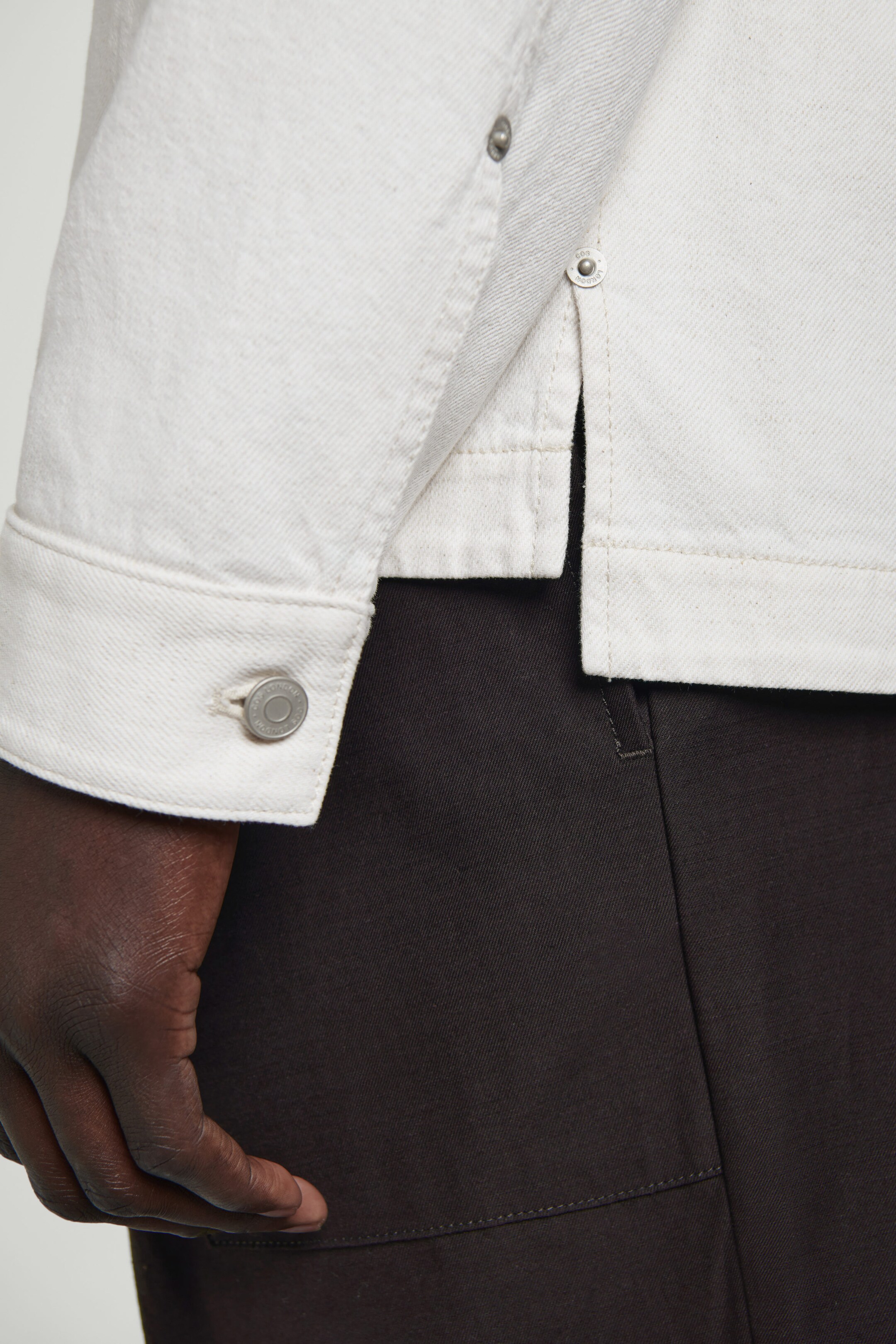 The menswear team reimagine the classic denim jacket for the warmer months ahead. Offered in a versatile chalk hue, this modern piece is made from organic cotton with a hint of linen for lightness and a rich texture. The patch pocket and split hem are detailed with silver-tone rivets.