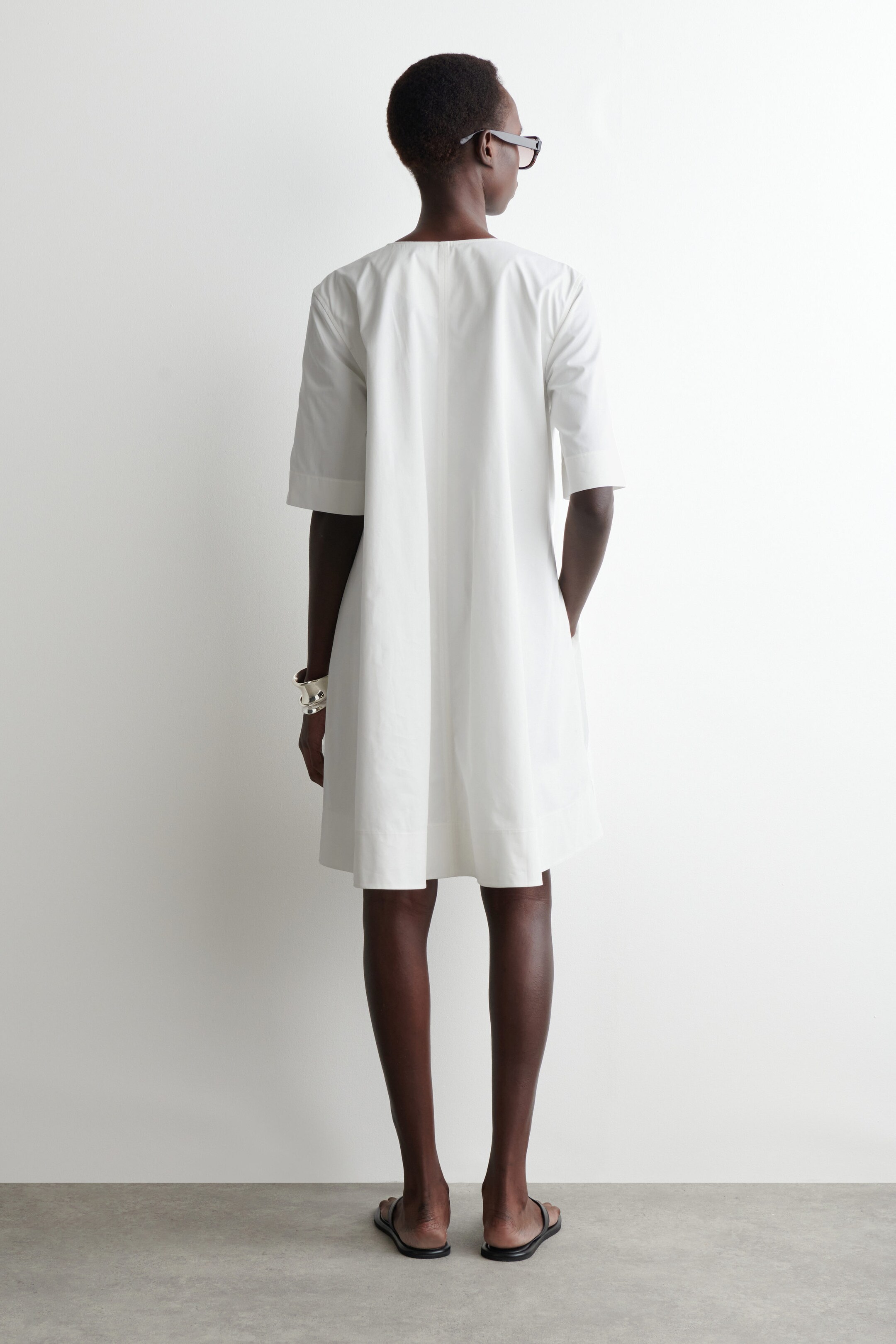 A refined take on utility codes, this dress is designed with stitched panels that fall into box pleats. It's crafted from soft cotton in a chalk hue and features a silver-tone zip, short sleeves and discreet side pockets.