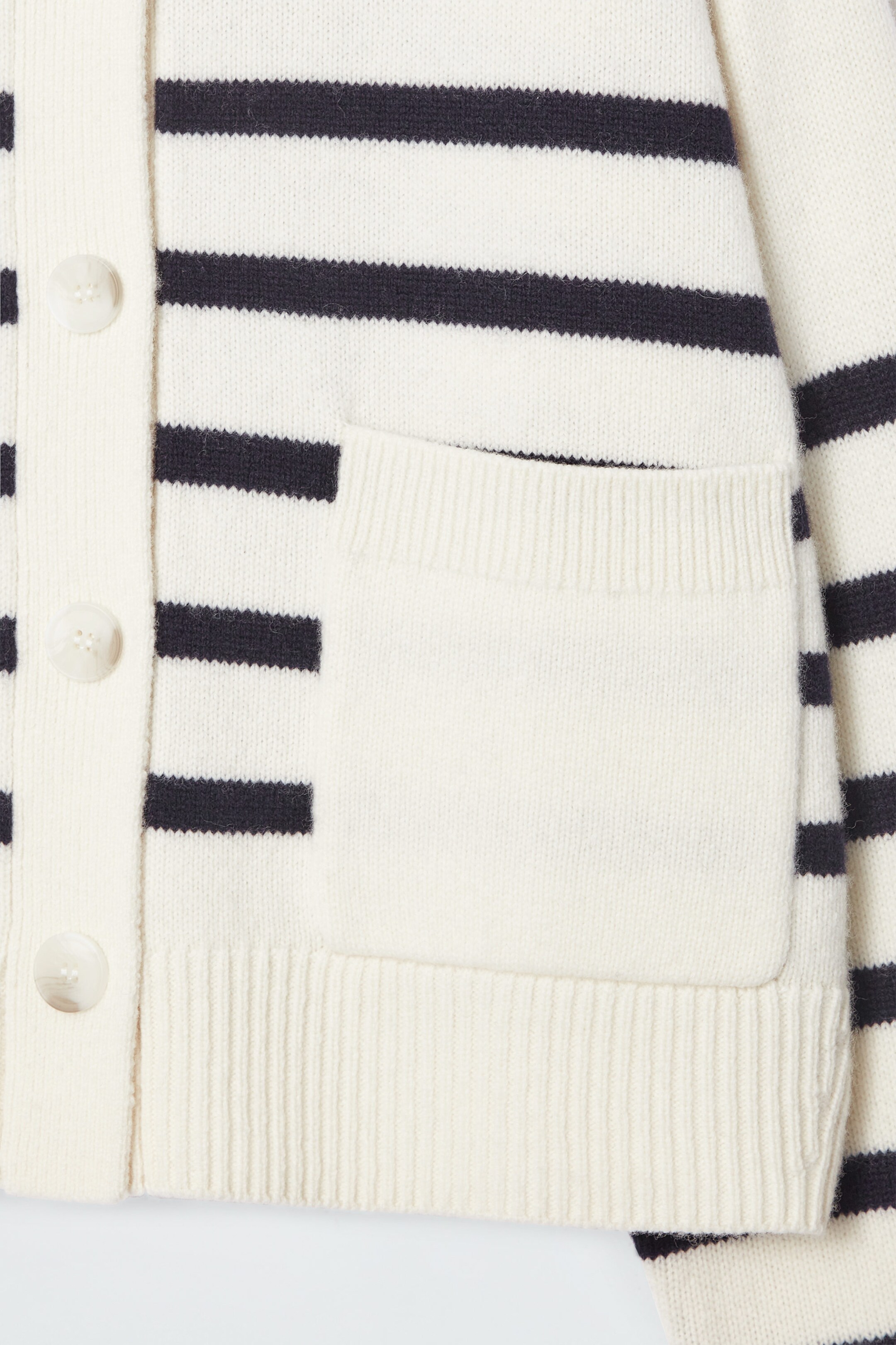 This classic cardigan will form the foundation of your transitional outfits. Knitted from RWS-certified wool, it's decorated with contrasting stripes and has a crew neck, front patch pockets and a row of horn-effect buttons.