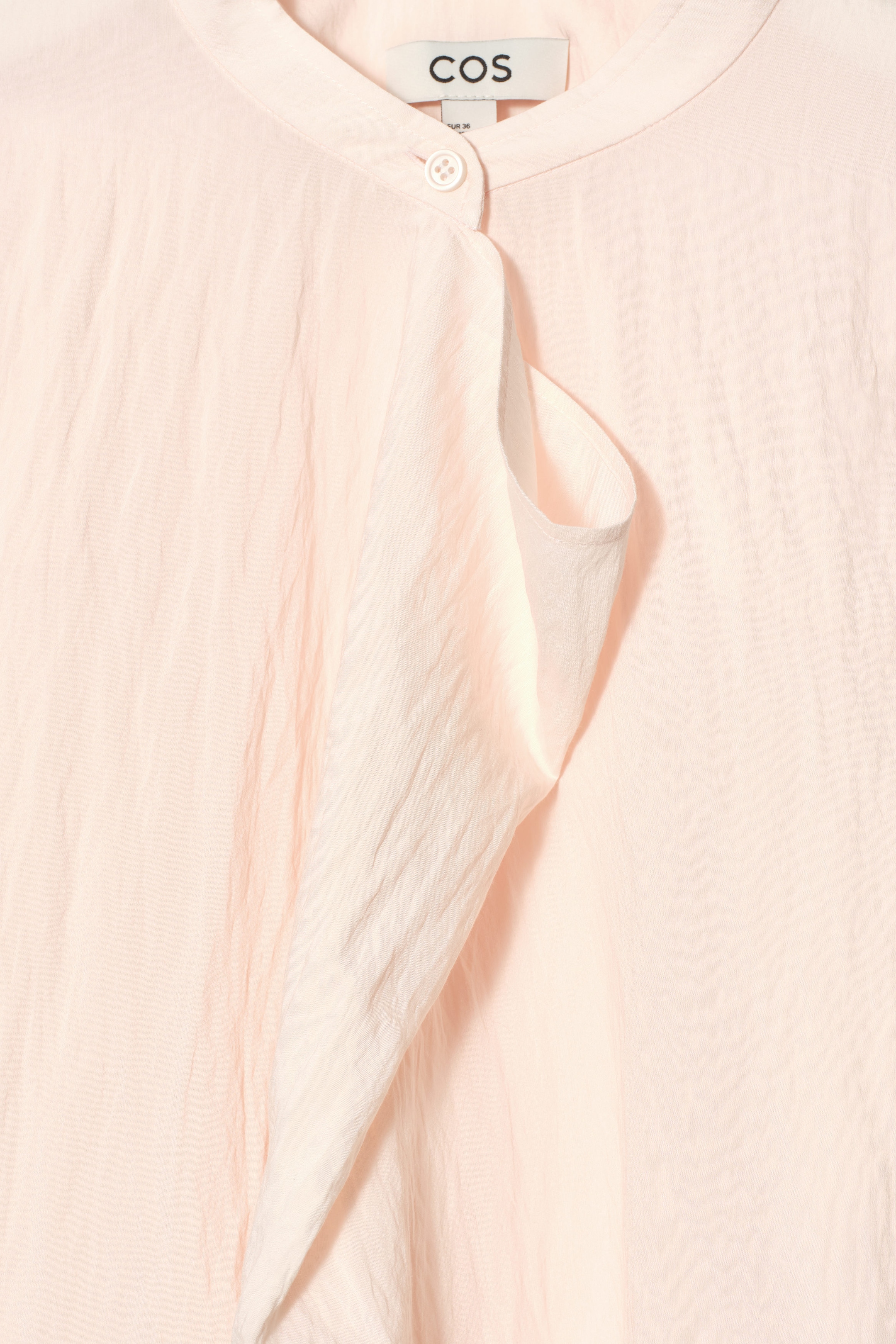 Rendered in a soft apricot hue, this blouse is crafted from an ECOVERO™ viscose blend that has a subtly rippled texture. It's shaped with long, flowing sleeves and has an asymmetric panel that drapes from the collar.