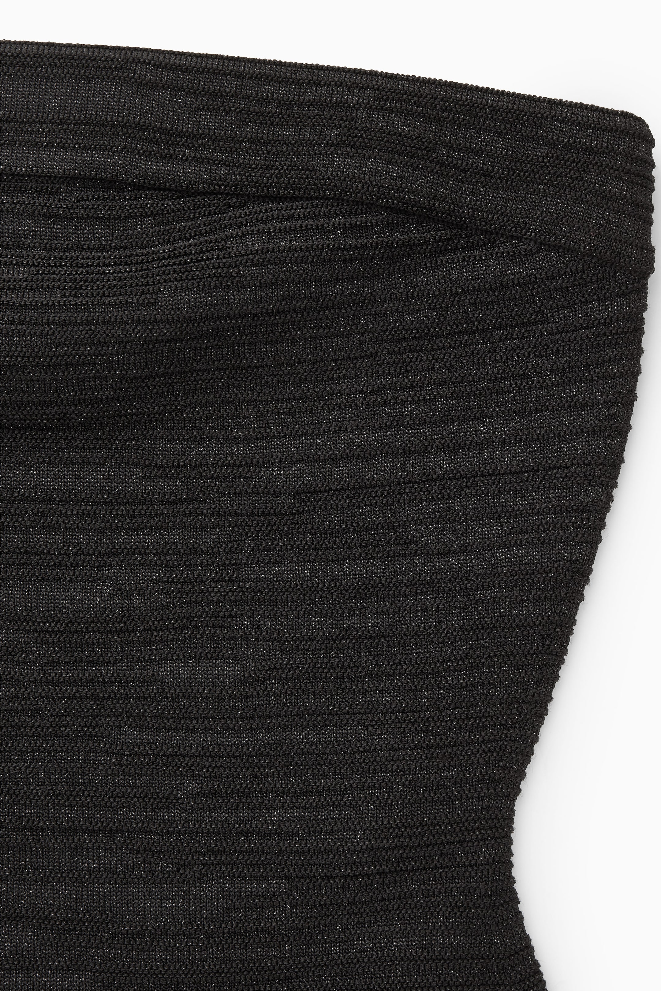 You may recognise this bandeau from the COS archives – the womenswear team refreshed the classic silhouette for party season. Crafted from a recycled nylon blend, it has a textured stitch that makes it look slightly ruched and is flecked with metallic yarn that subtly catches the light. Create the illusion of a dress by styling it with the coordinating pencil skirt.