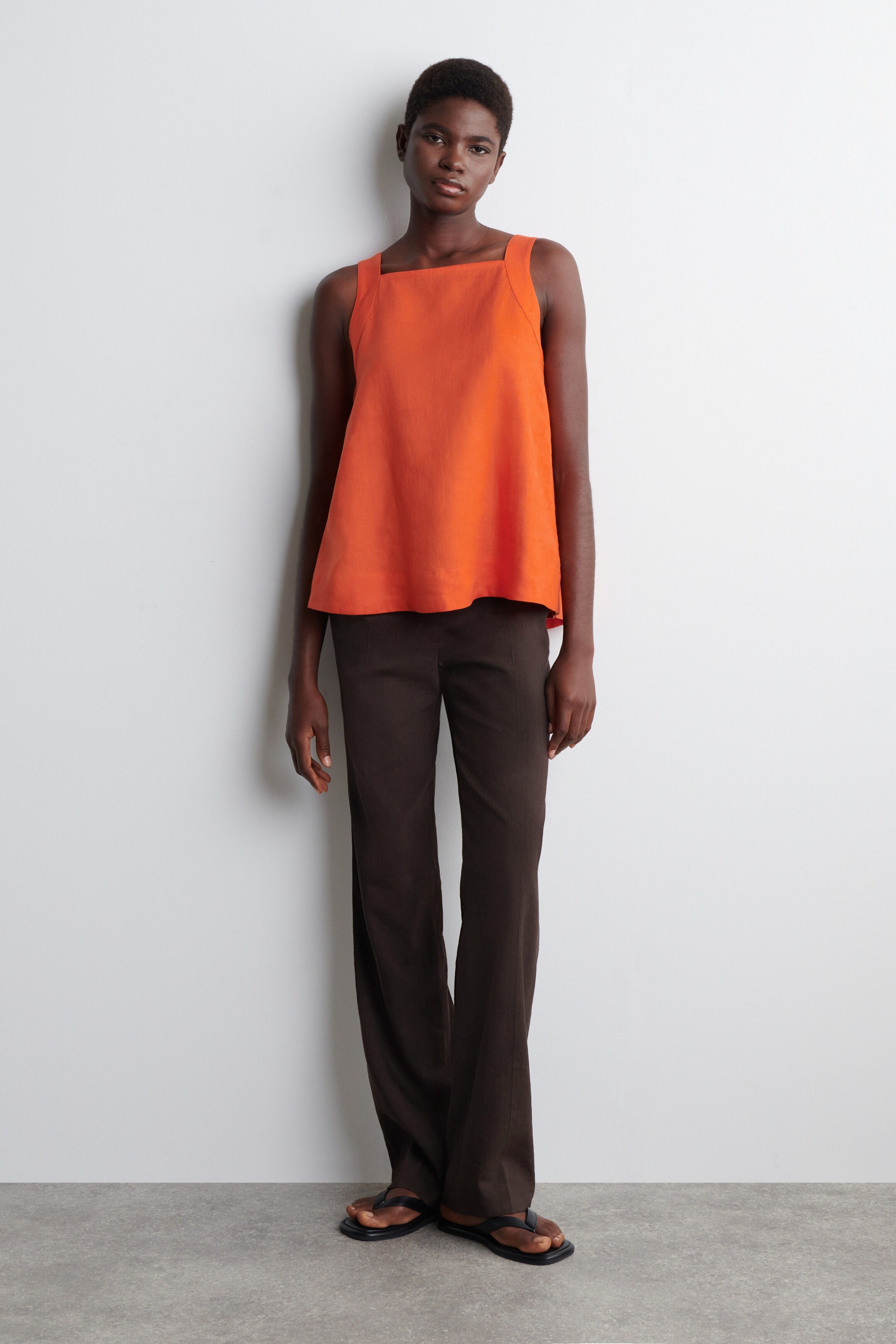 This effortless top is a natural choice for balmy summer days. Crafted from naturally cooling linen, it has a sleeveless square neckline and wide shoulder straps that form into a neat bow at the open back.