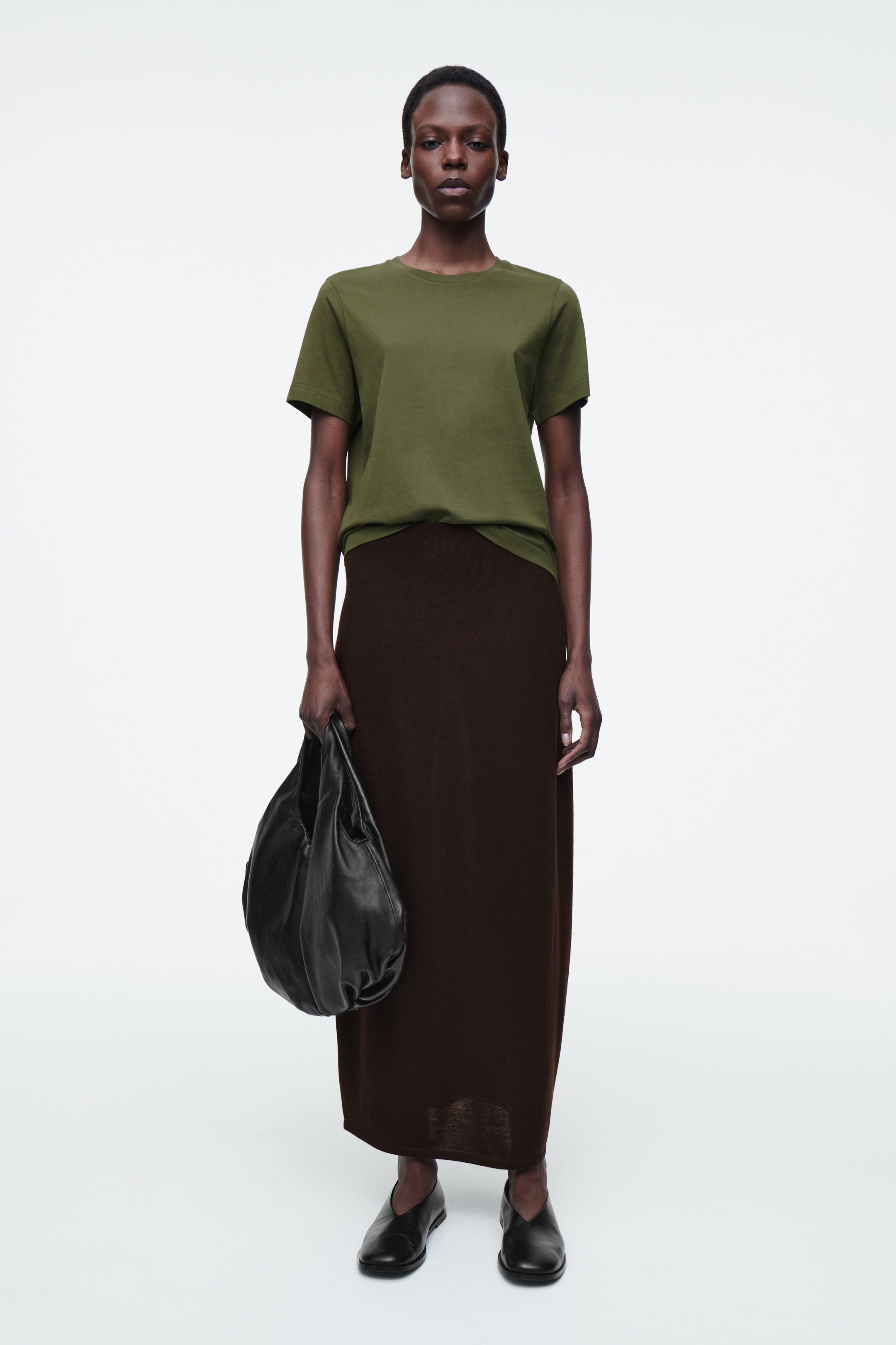 The COS womenswear team present an everyday icon, perfected. This refined T-shirt is crafted from lightweight 150gsm cotton-jersey, chosen for its comfort and unparalleled softness. It's cut in a classic crew-neck shape and comes in an earthy khaki tone.