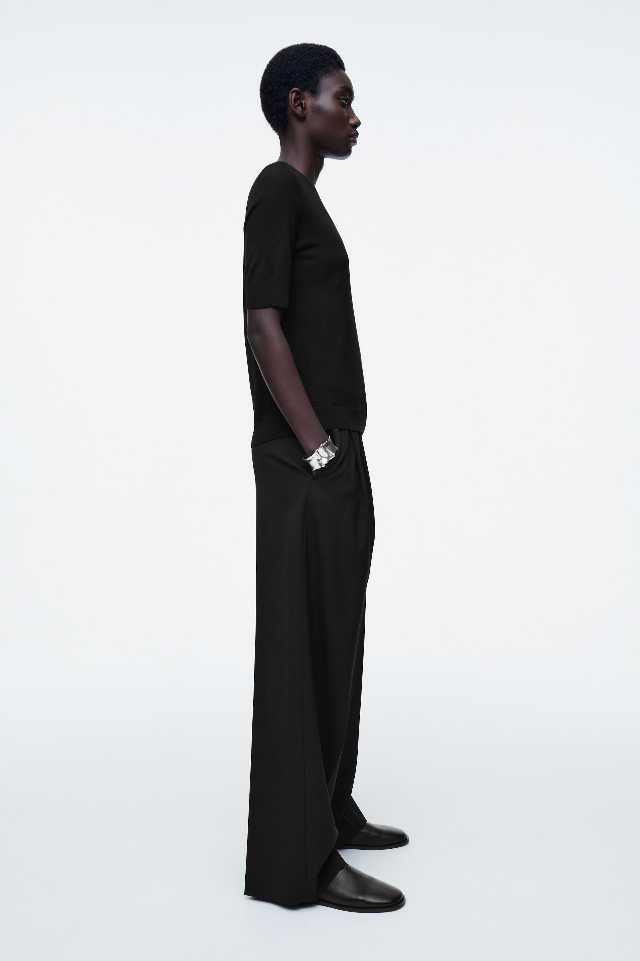 Refined staples are a cornerstone of every COS ready-to-wear collection. This T-shirt is expertly knitted from premium superfine merino wool that's soft and naturally temperature-regulating. It's cut in a slim shape that lends itself to layering and has a seamless construction with pointelle details.