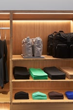 Designed and delivered in-house, the new store concept underlines the COS commitment to increasing circularity. Lloyd says the priority is to ‘drastically reduce the carbon impact of our stores and become a leader in industry for sustainable store design. This is clear in everything from 100% recycled content acrylic for the display cases, the low-carbon rail system and fast-growing bamboo lumber for the in-store wardrobes. The new stores have become more environmentally friendly – and compared to previous stores, recycled content has increased by more than 50%.