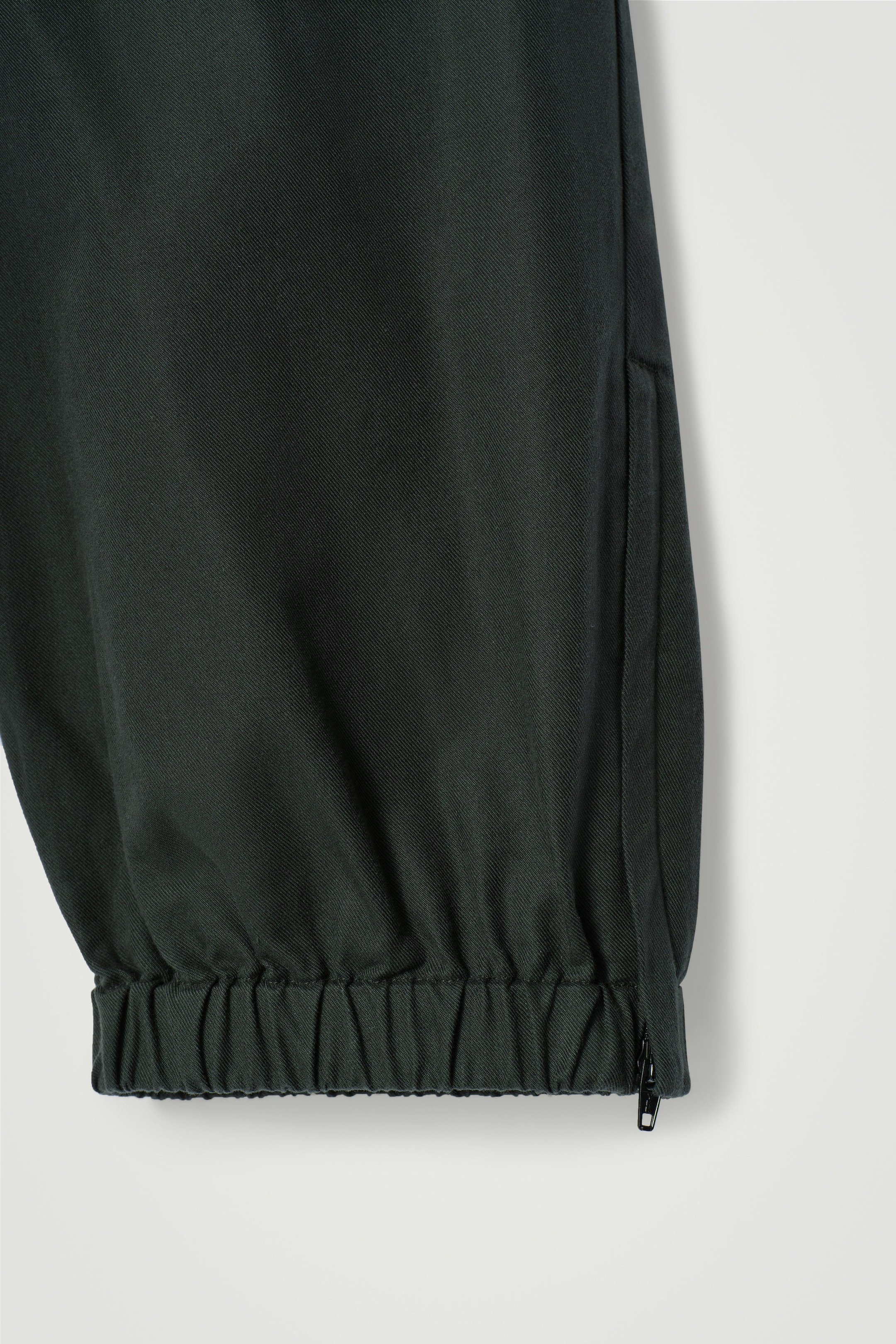 A tailored take on loungewear, these trousers have elasticated trims that borrow from joggers. They're made from cotton-blend twill that has a fluid handle and cut in an ankle-length, tapered shape with modern zipped cuffs that can be styled open or closed.
