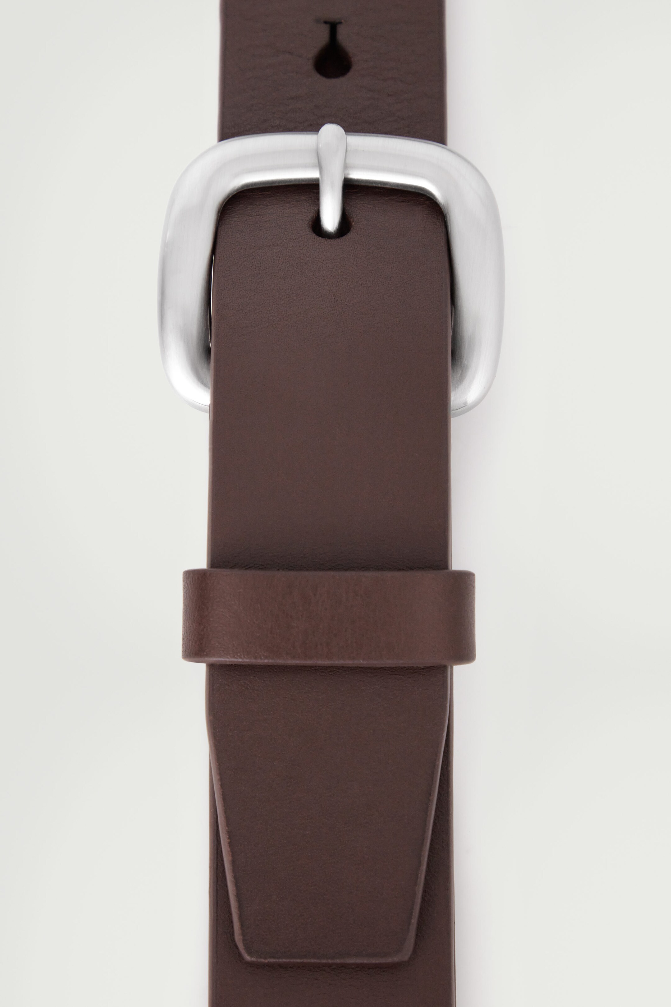This refined belt is crafted from premium leather and tanned a rich tobacco hue using a chrome-free dyeing process. It's designed with a tonal leather keeper and a chunky buckle made from brushed silver-tone metal.