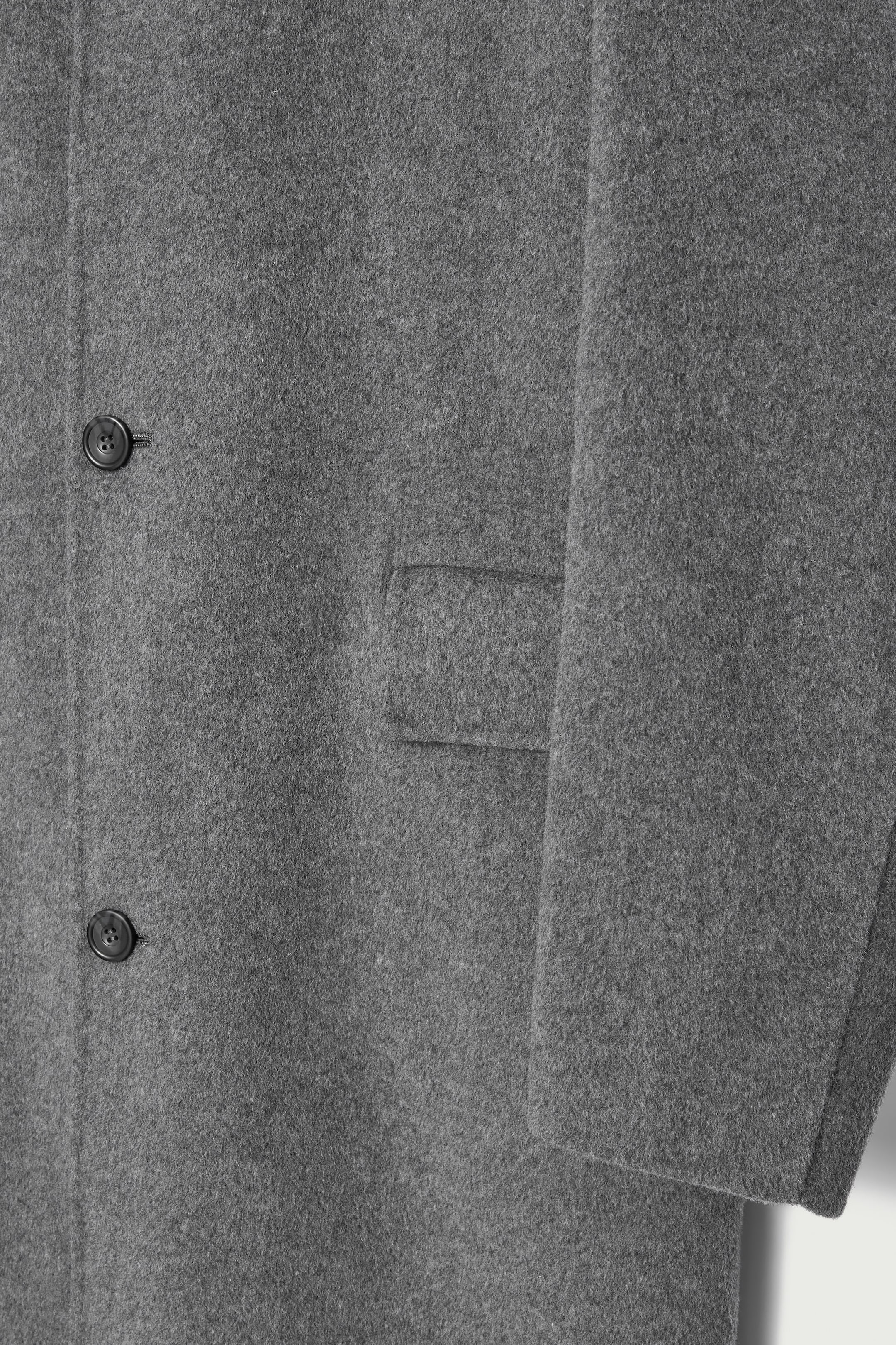 Quality outerwear will last years in your wardrobe when properly cared for. This grey coat is made from a soft and warm RWS wool blend that's double-faced for a premium finish and has a relaxed shape that allows for layers underneath. It features traditional design elements such as a pointed collar, a pair of flap pockets and a back vent for ease of movement.