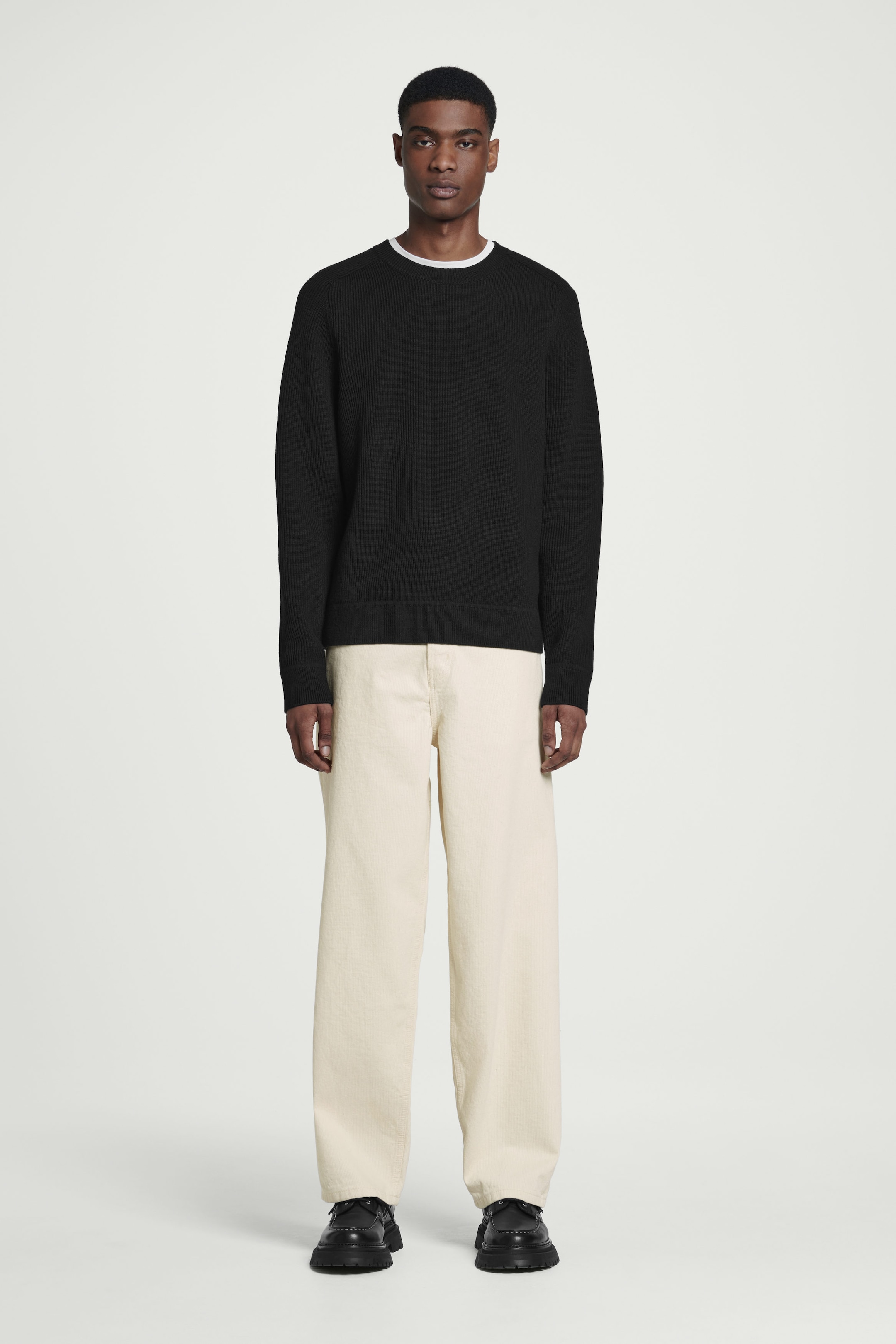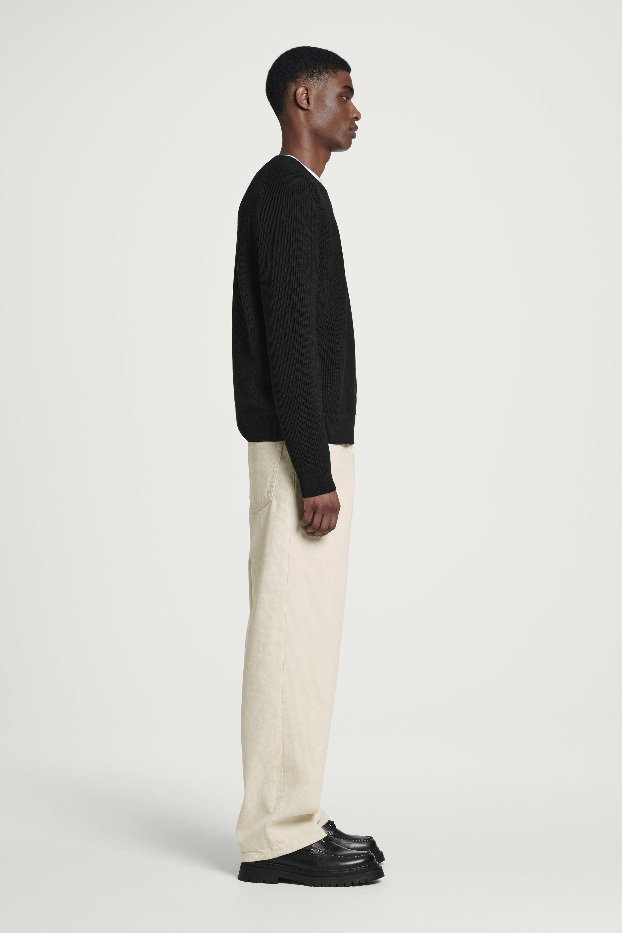Designed with subtle nods to utility, the Rider jeans are made from 14.3oz organic cotton denim, which is chainstitched and washed a muted ecru hue. They're cut in a relaxed, straight-leg shape and feature workwear-inspired topstitching on the back pockets.