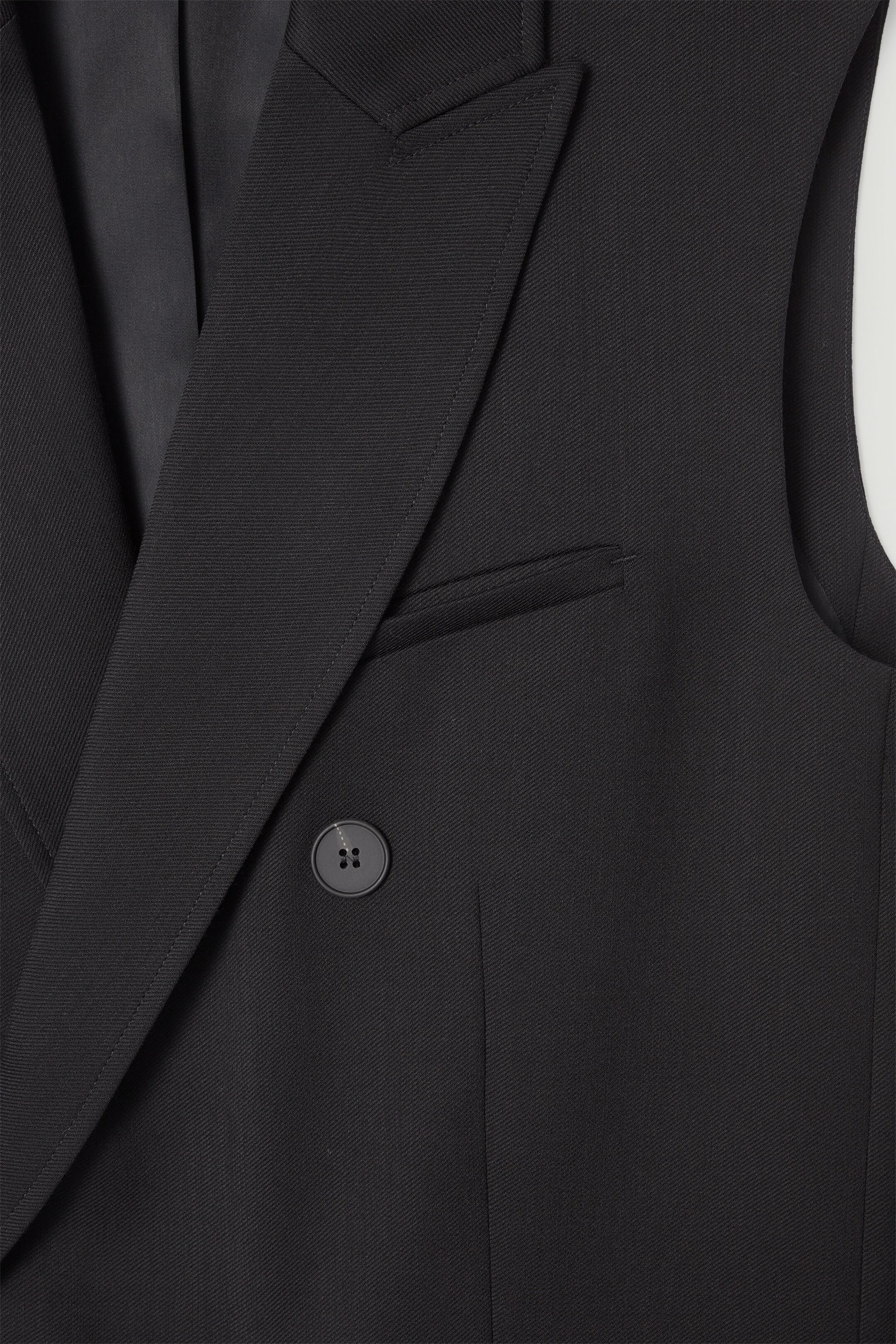 Precise tailoring is the foundation of every ATELIER collection. Tailored in a relaxed shape, this sleeveless double-breasted blazer is designed with sharp shoulders, peak lapels, a single vent and four welt pockets at the front. Wear it as a suit with the matching trousers.