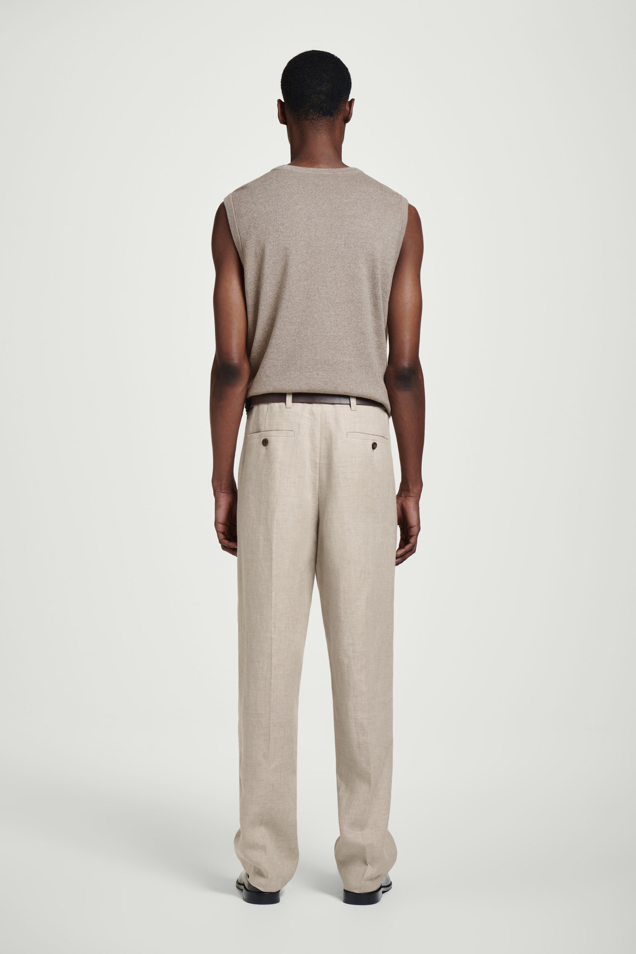 Pared back yet polished, these trousers propose a refined take on summer dress codes. They're crafted from undyed linen that has a light, textured handle and tailored in a relaxed shape with tapered legs and an adjustable tab inside the waist to perfect the fit. Style them as a suit with the matching blazer.