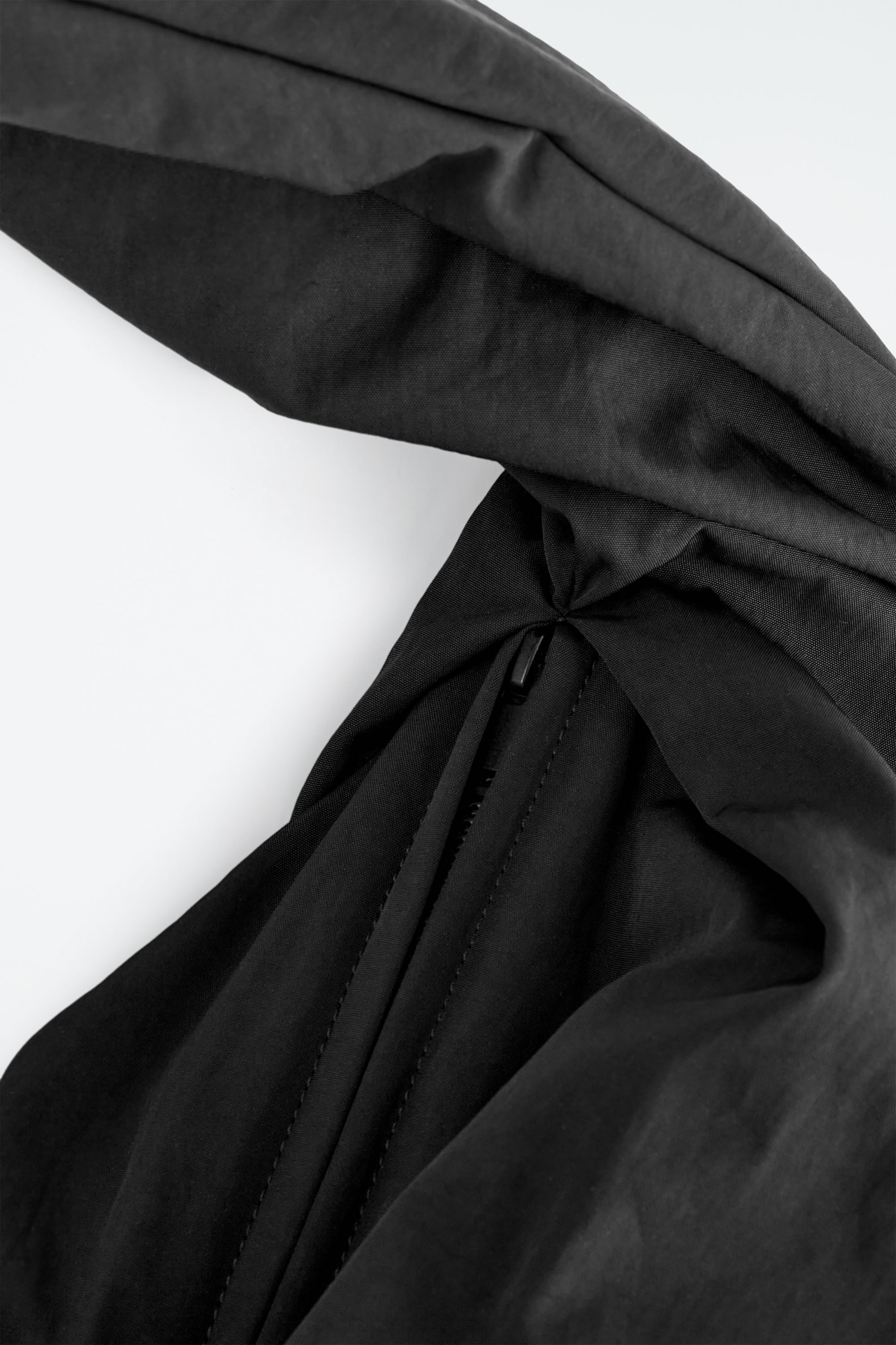 The COS accessories collection spotlights talking-point pieces like the new-season Kite bag. Named for its angular shape, this oversized version has a distinctive asymmetric silhouette and a tonal strap that rests on the shoulder. It's made from recycled nylon in our trademark pillowy texture and closes with a secure zip.