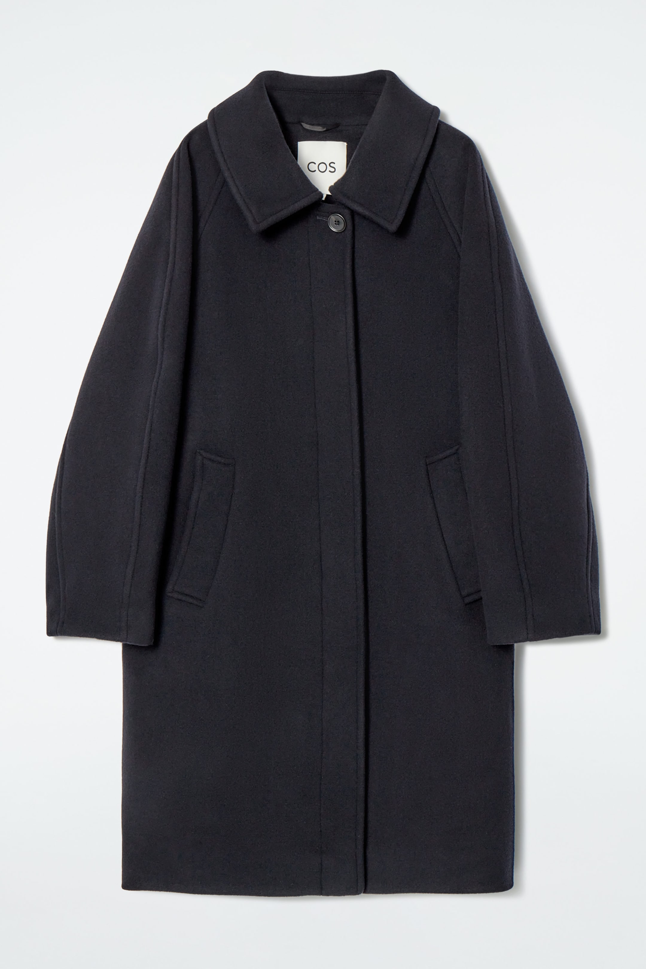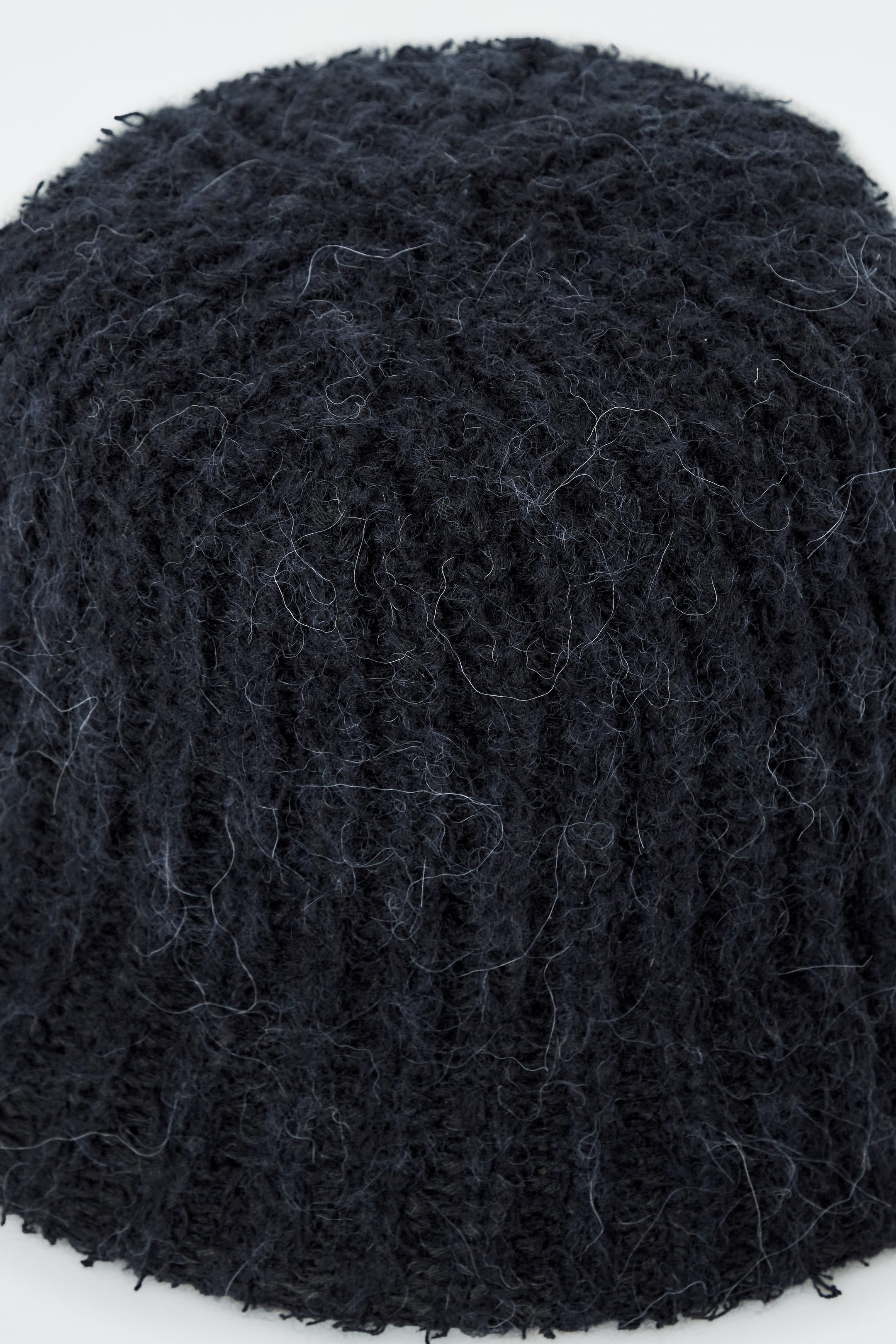 Dynamic textures bring a point of interest to the COS wardrobe this season. This bucket hat is knitted from an organic cotton, alpaca and wool blend and dyed an indigo tone that emulates denim. The chunky ribbing and fraying give it undone appeal.