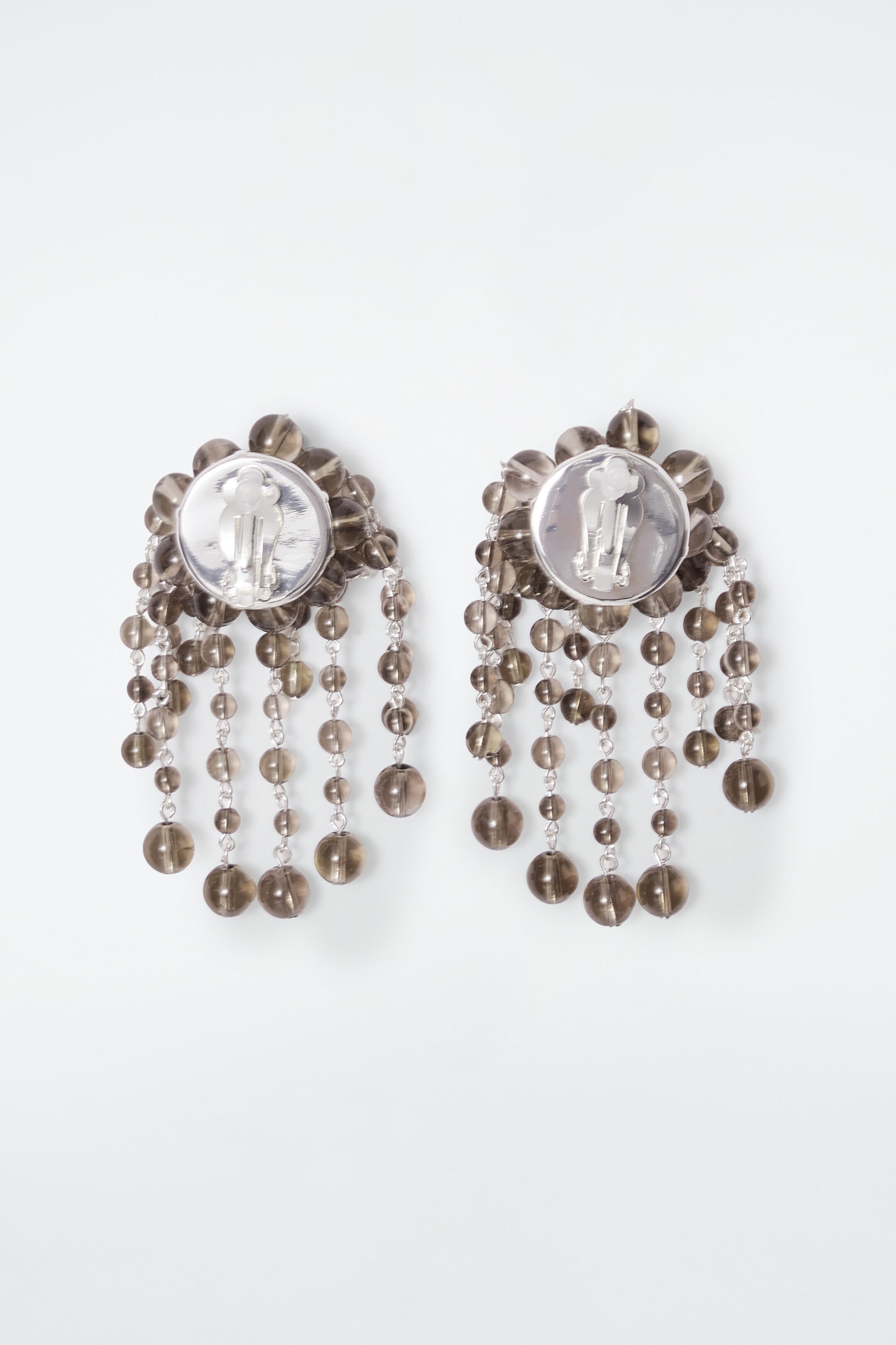 These striking clip-on earrings are designed with tassels of rounded quartz stones that cascade from the ear. Style them with your hair pulled back.