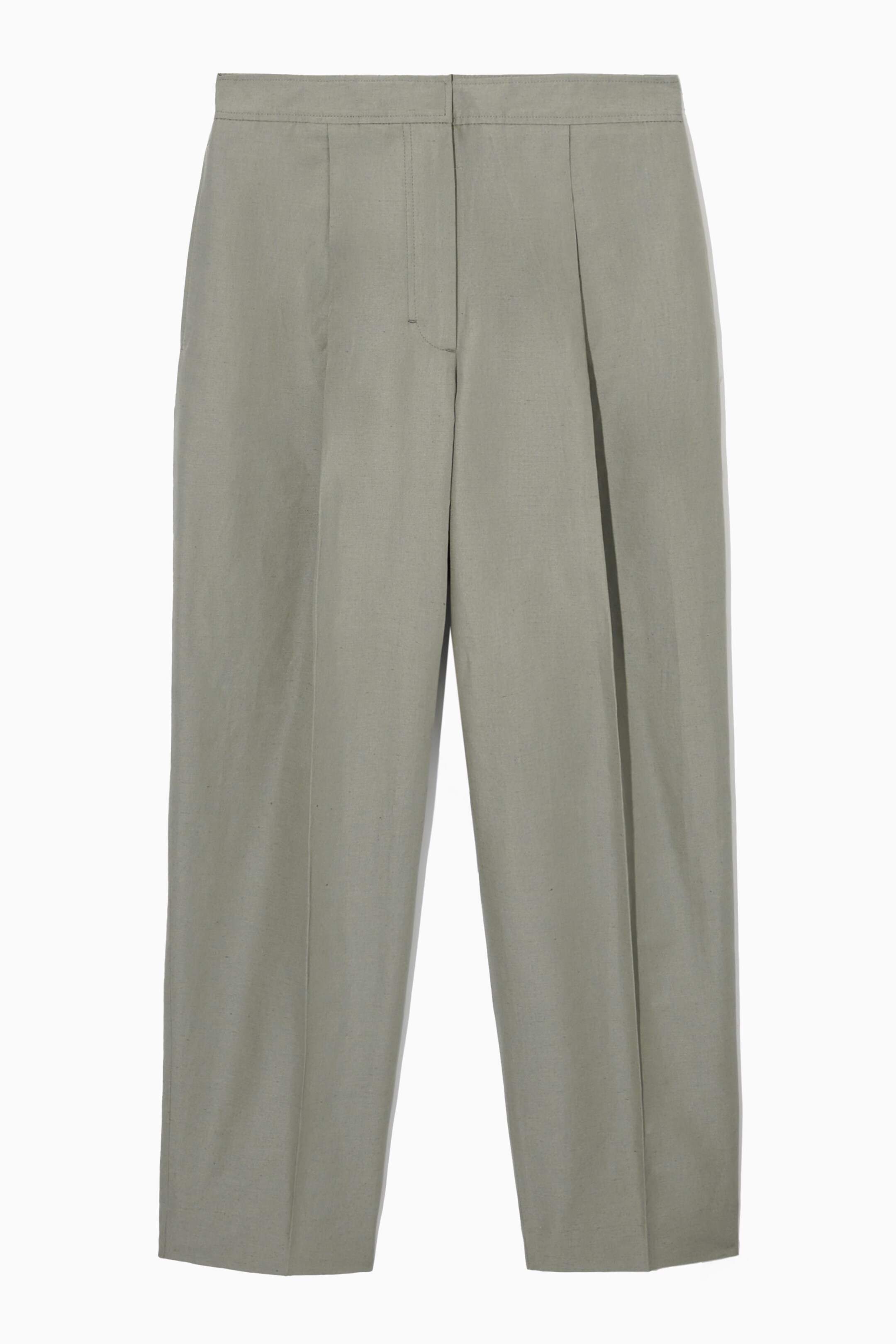 Tapered trousers have long been a cornerstone of the COS collection. Equal parts classic and contemporary, the tapered trousers in our edit are precisely tailored for a roomier fit through the thighs before narrowing towards the cuffs. Sculptural barrel-leg shapes offer a modern take on the silhouette, while our signature Arch jeans are a cornerstone of the everyday wardrobe. Crafted from premium cotton, linen and wool cloths, our tapered trousers exude a quiet sophistication.