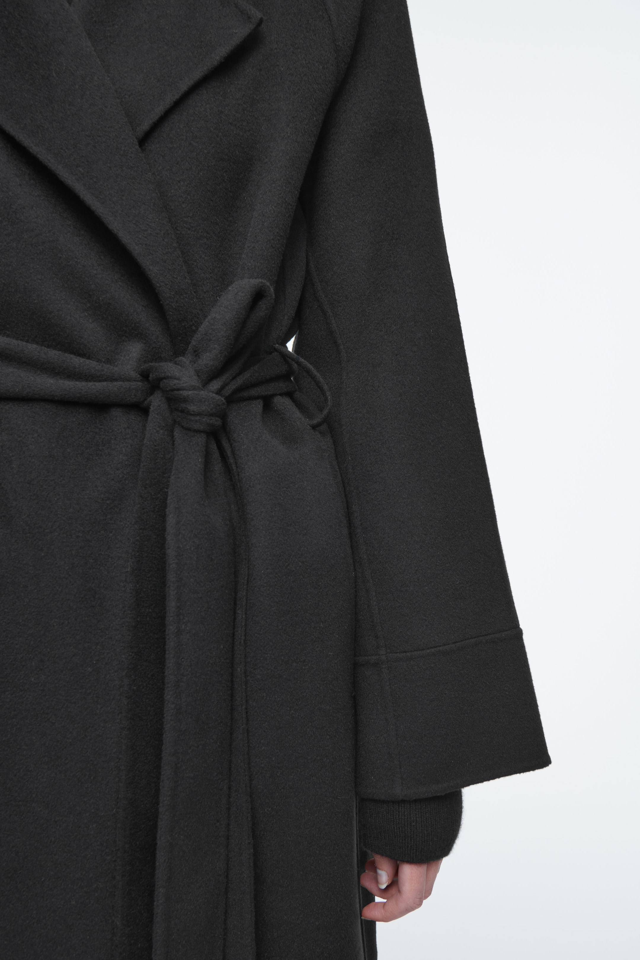 This understated coat will see you through countless winters thanks to its enduring black hue. It's tailored in a classic fit that's relaxed by the raglan sleeves and designed with oversized lapels, wide cuffs and a detachable belt to cinch the shape. The RWS-certified wool and TENCEL™ Lyocell cloth is double-faced for enhanced structure and warmth.