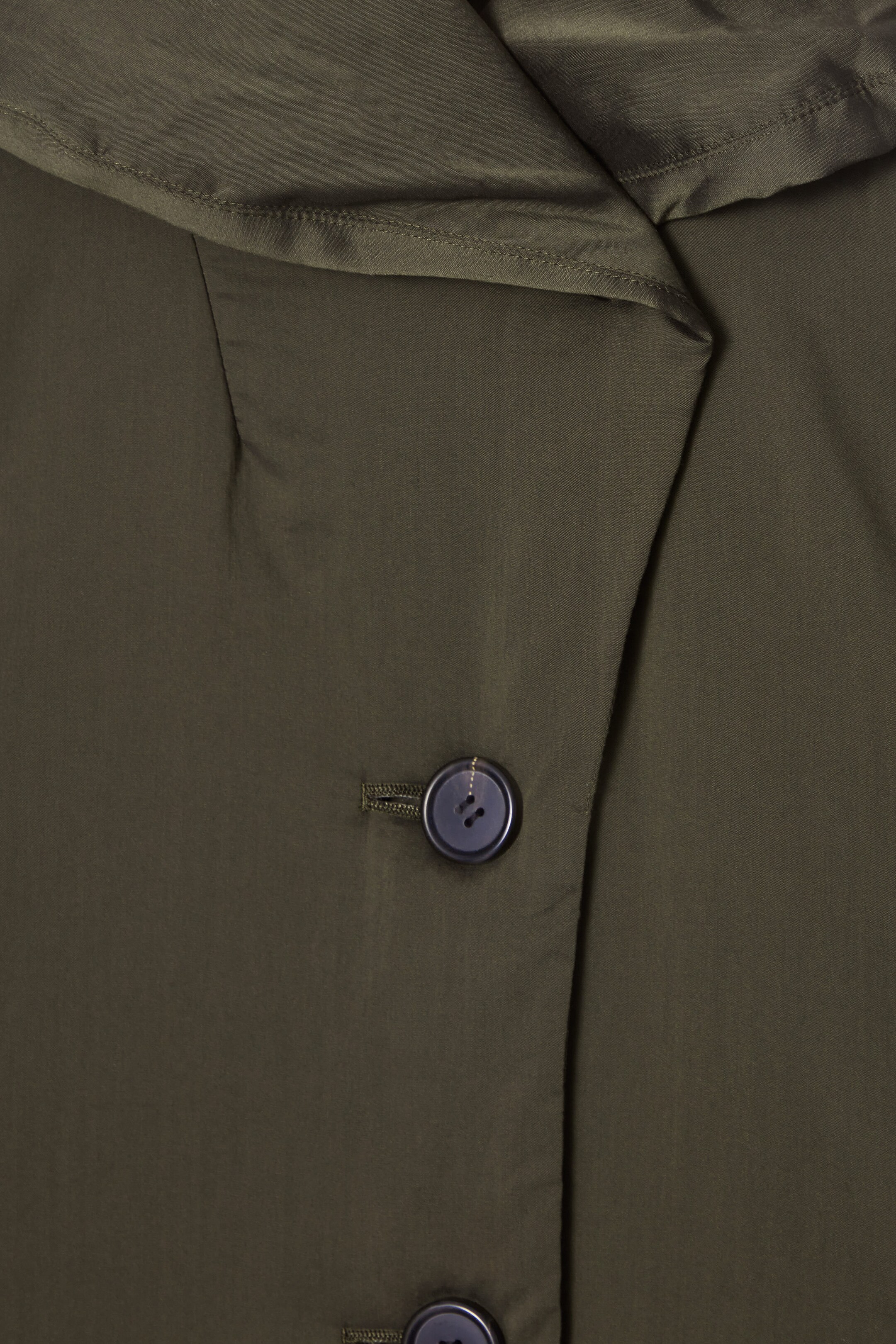 The womenswear team reimagine the padded coat in a distinctive silhouette for Autumn Winter 2024. This khaki piece is designed with a cocooning shawl collar, ultra-lightweight filling and an oversized shape, with pockets on the front to keep your hands warm.