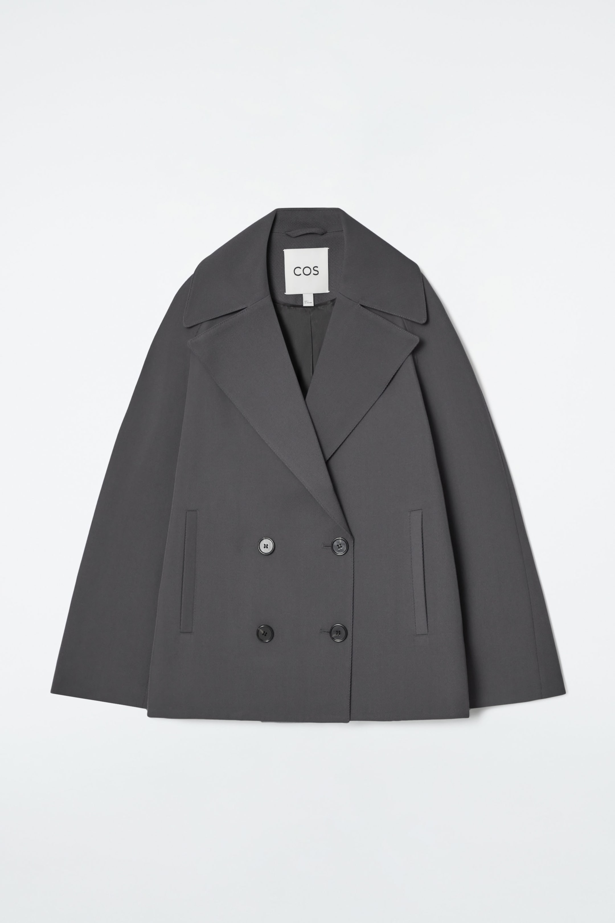 Classic design codes are subtly reimagined in this double-breasted jacket. It's crafted from RWS wool-blend twill in cool-toned charcoal and has exaggerated lapels that emphasise the relaxed, boxy shape. Style it with trousers for a laid-back take on tailoring.