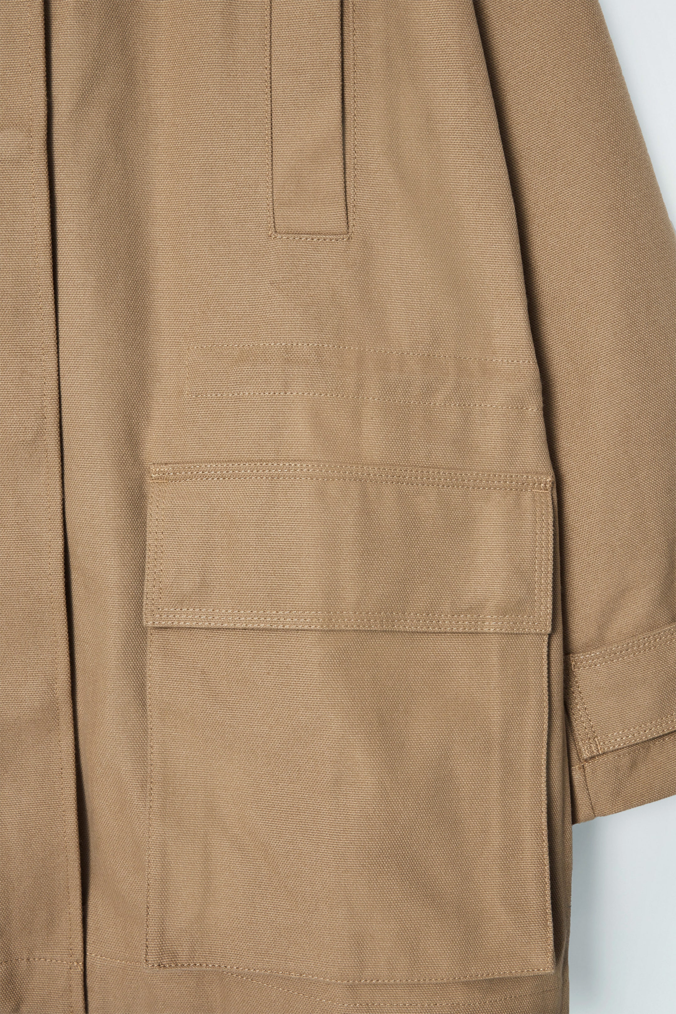 This jacket balances utilitarianism and refinement for the autumn/winter season. Crafted from structured cotton-canvas, it's designed with a butter-soft leather collar that contrasts the camel hue and has an internal drawcord to define the oversized silhouette. It's finished with welt and patch pockets, adjustable cuffs and a hanger loop. Style it with the matching trousers.