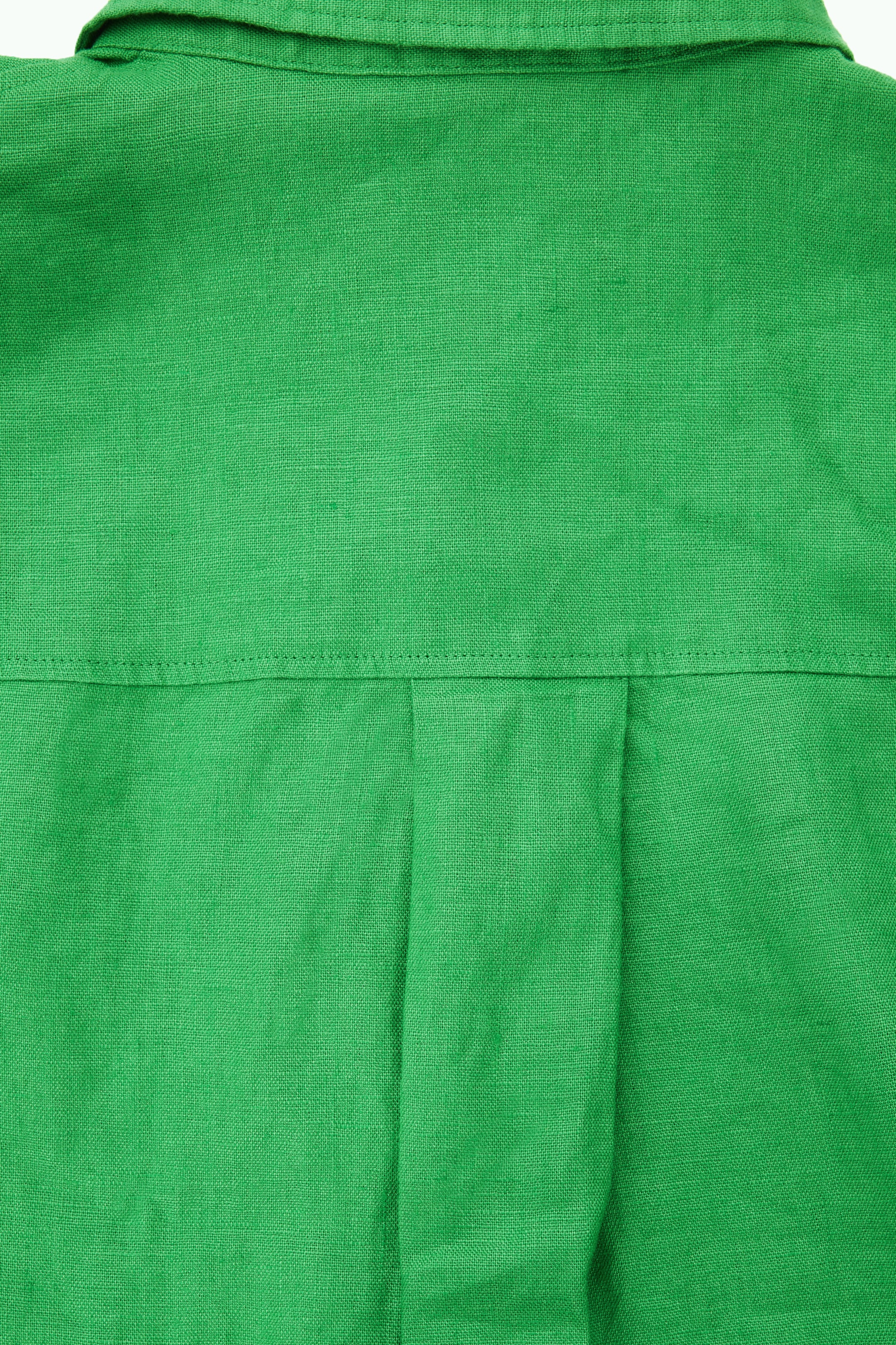 Crafted from pure linen that's breathable, lightweight and has a natural texture, this bright-green shirt is cut for an oversized fit that's perfect for wearing over tanks when the temperatures rise. It has a pointed collar, patch pocket and a curved, stepped hem.