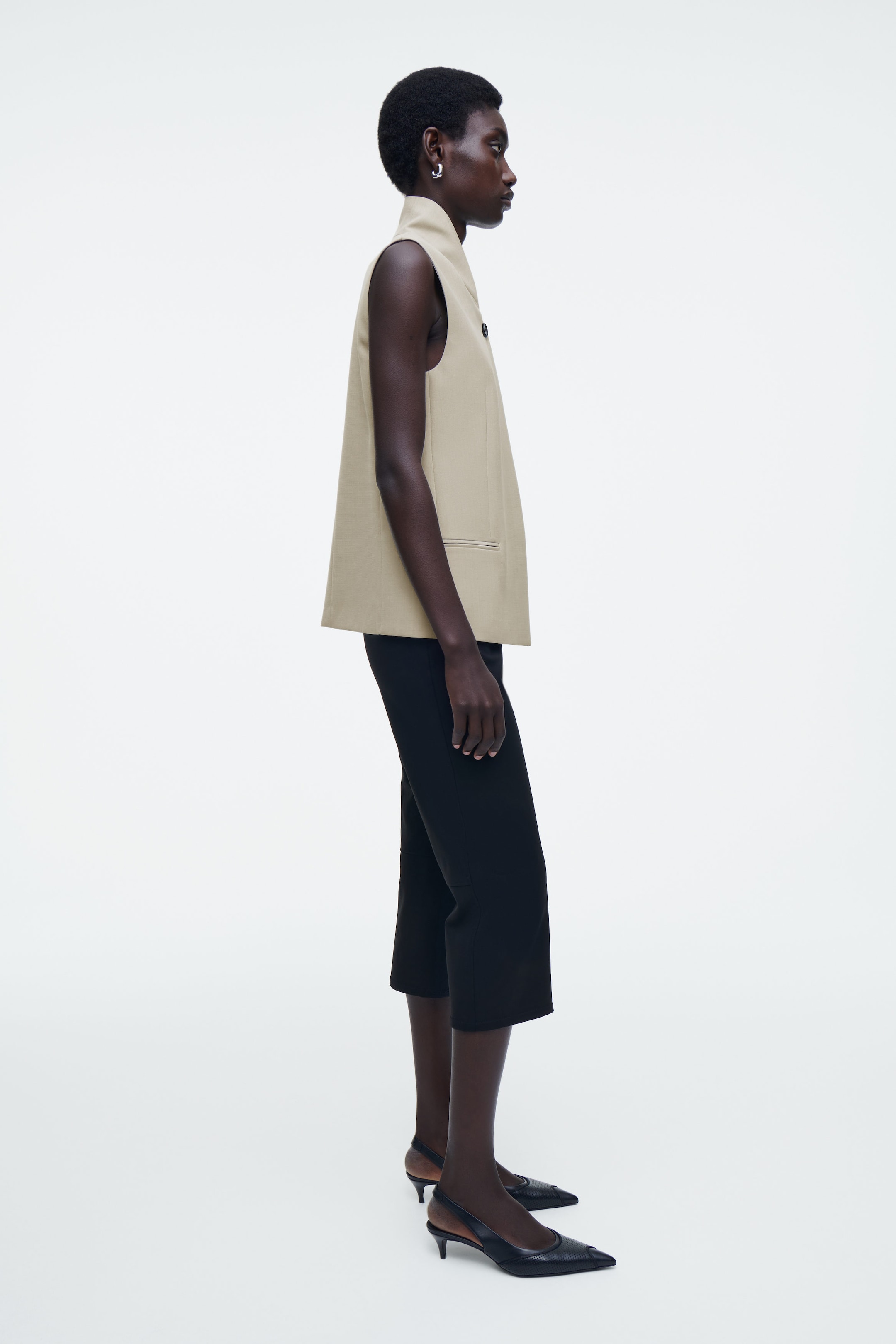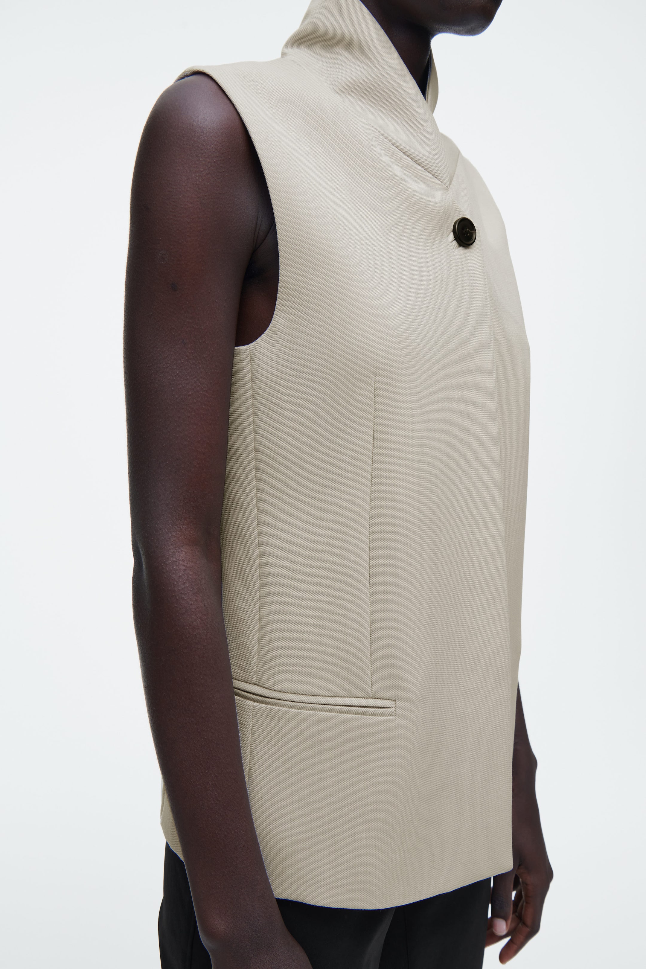 Tailored in a longline shape, this refined waistcoat is crafted from a premium RWS wool blend and designed with a single-breasted close and standing lapel for effortless styling. The cappuccino tone lends balance to the rest of your wardrobe.