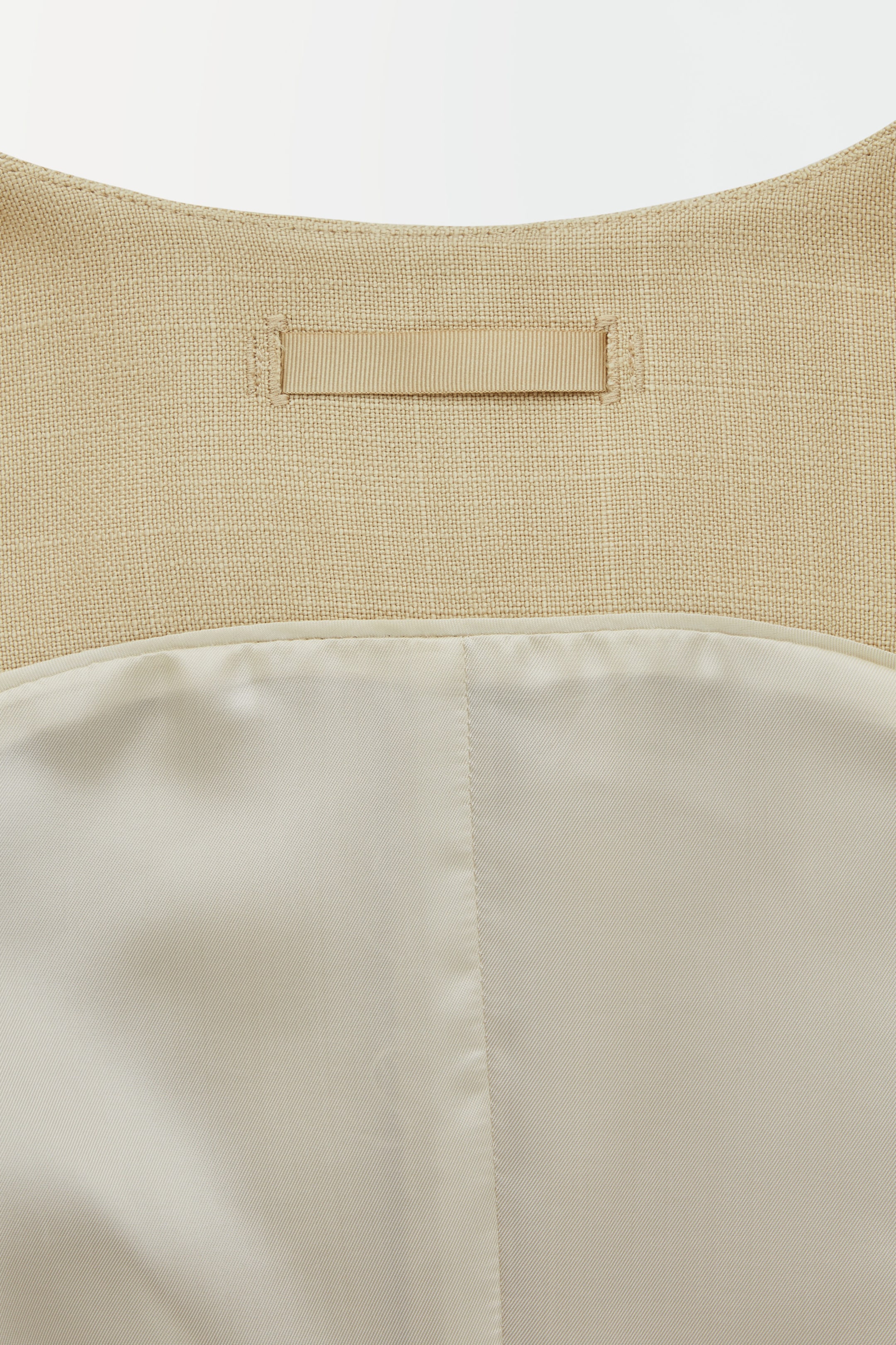 We handpicked the tightly woven cloth for its subtle texture and beautiful drape. The sandy-beige tone has been precisely colour matched to the blazer, trousers and maxi skirt from the capsule, so it has endless styling potential.